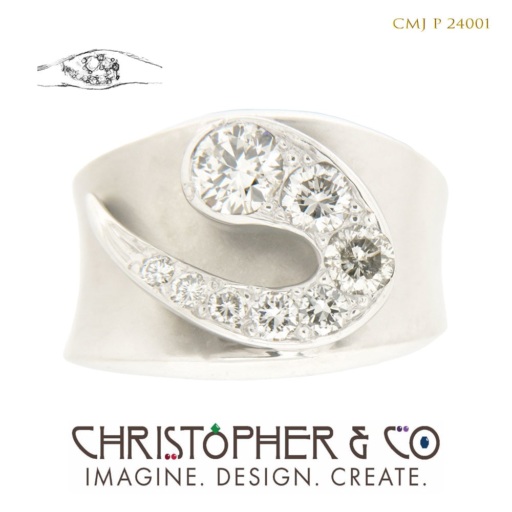 One 14 karat white gold ring designed by Christopher M. Jupp. The ring is set with one 0.50 carat brilliant cut diamond which is G in color and SI2 in clarity. The ring is also set with two 3.90 mm 0.25 carat brilliant cut diamond which is I/J in color and I1 in clarity; two 2.80 mm 0.08 carat brilliant cut diamond which is I/J in color and I1 in clarity; two 2.1 mm 0.03 carat brilliant cut diamond which is I/J in color and I1 in clarity; one 1.88 mm 0.02 carat brilliant cut diamond which is I/J in color and I1 in clarity.