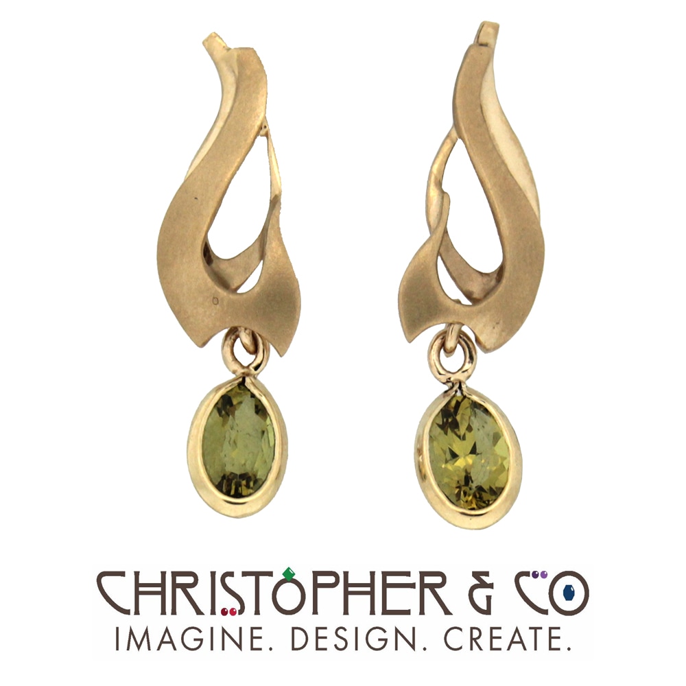 One pair of 14 karat yellow gold earrings designed and handcrafted by Christopher M. Jupp. These earrings are set with one pair of Mali Garnets which have a total weight of 1.91 carats.