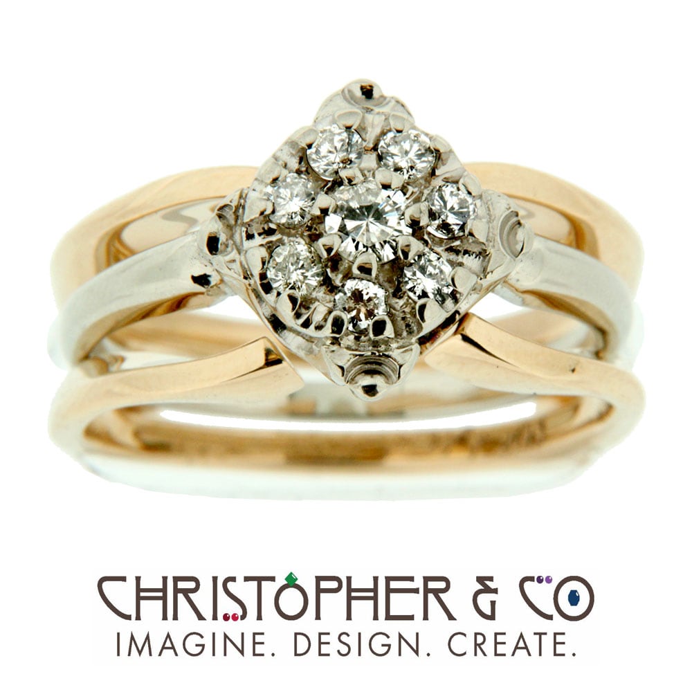 One 14 karat yellow gold wedding ring designed and handcrafted by Christopher M. Jupp. This ring is set with gemstones which were provided by the customer.