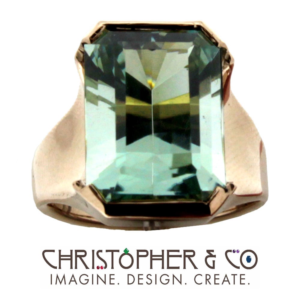 One 14 karat yellow gold ring designed and handcrafted by Christopher M. Jupp. This ring is set with one green tourmaline.
