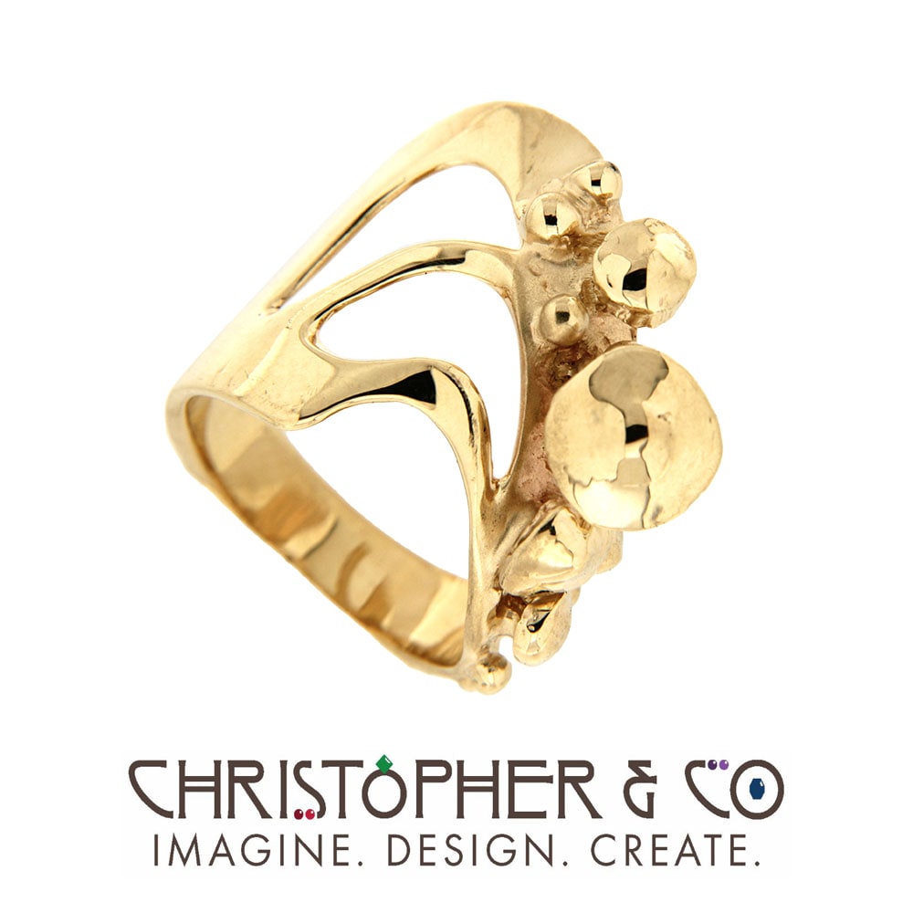 One 14 karat yellow gold mushroom ring designed by Christopher M. Jupp.
