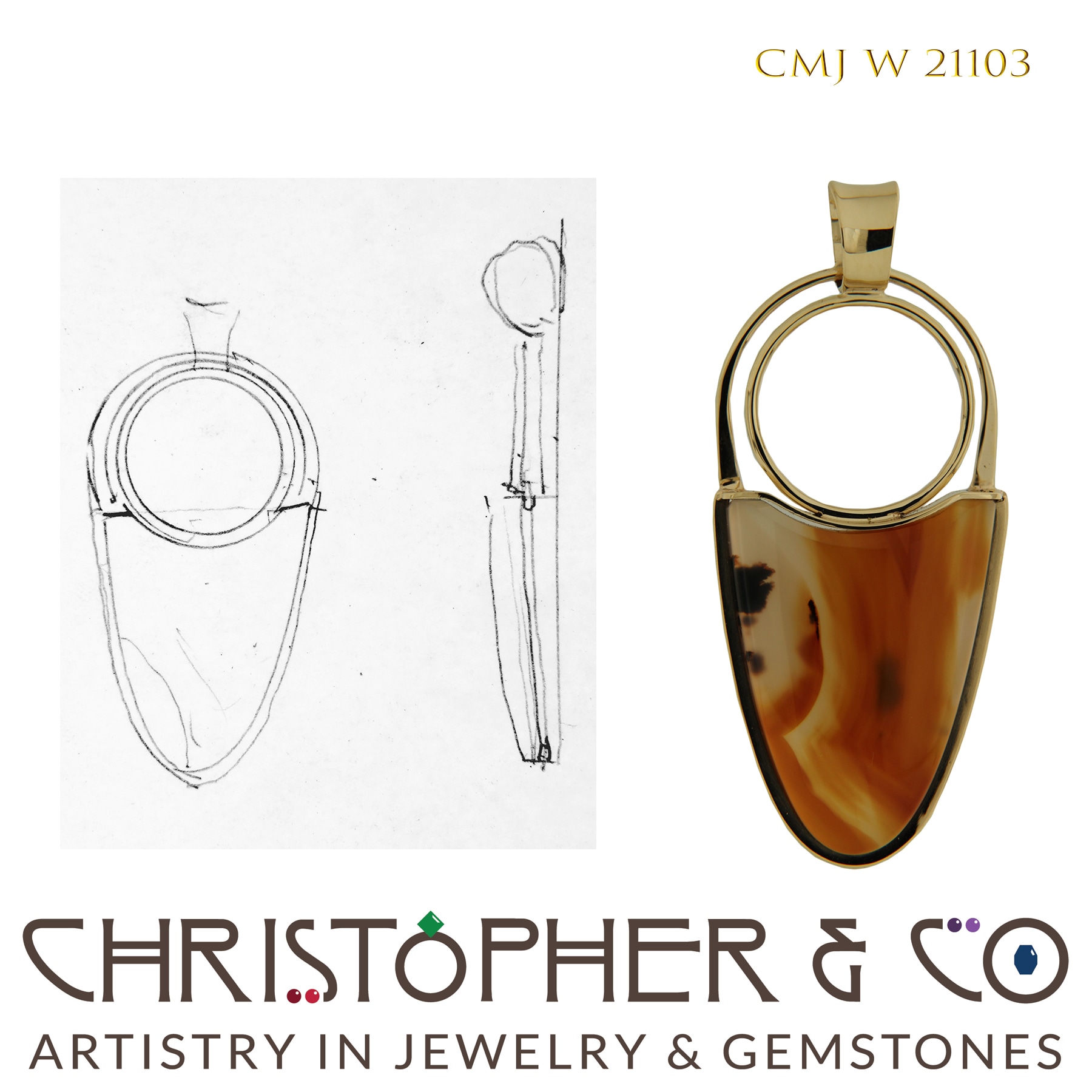 One 14 karat yellow gold pendant designed by Christopher M. Jupp. The pendant is set with an agate.