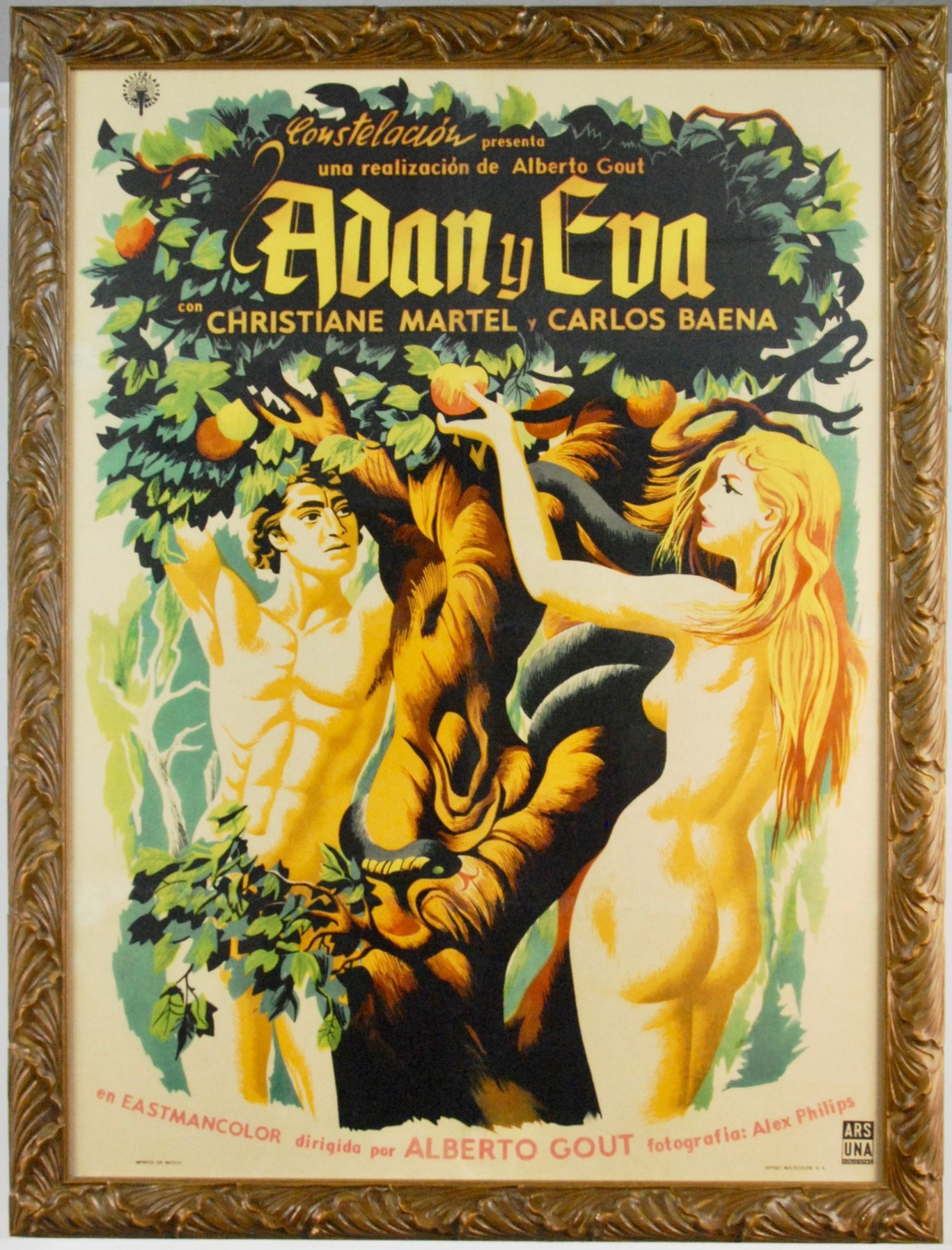 This Mexican production, written and directed by Alberto Gout, featured Christiane Martel and Carlos Baena as the titular first couple. The poster recalls the rich history of paintings inspired by Biblical narratives more than its movie poster counterparts.