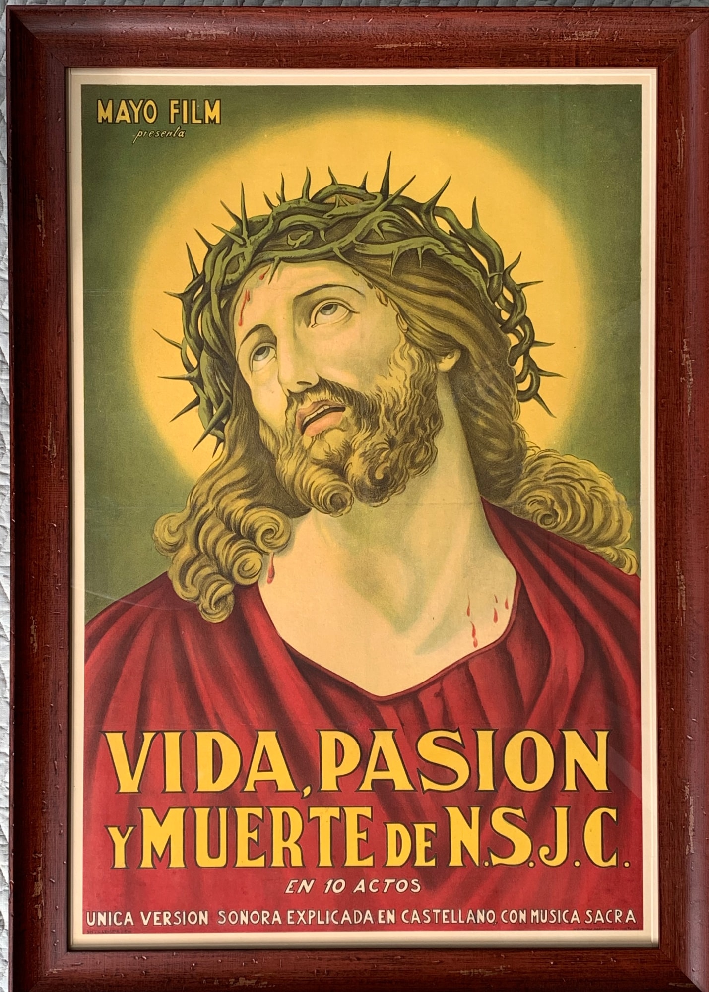 A silent French film produced by the Pathe Brothers, accompanied by music. In this instance, the poster indicates both sacred music accompaniment and Spanish-language explanations. The original 1902 film, "La Vie et la passion de Jesus-Christ" was rereleased in 1905 under this title.