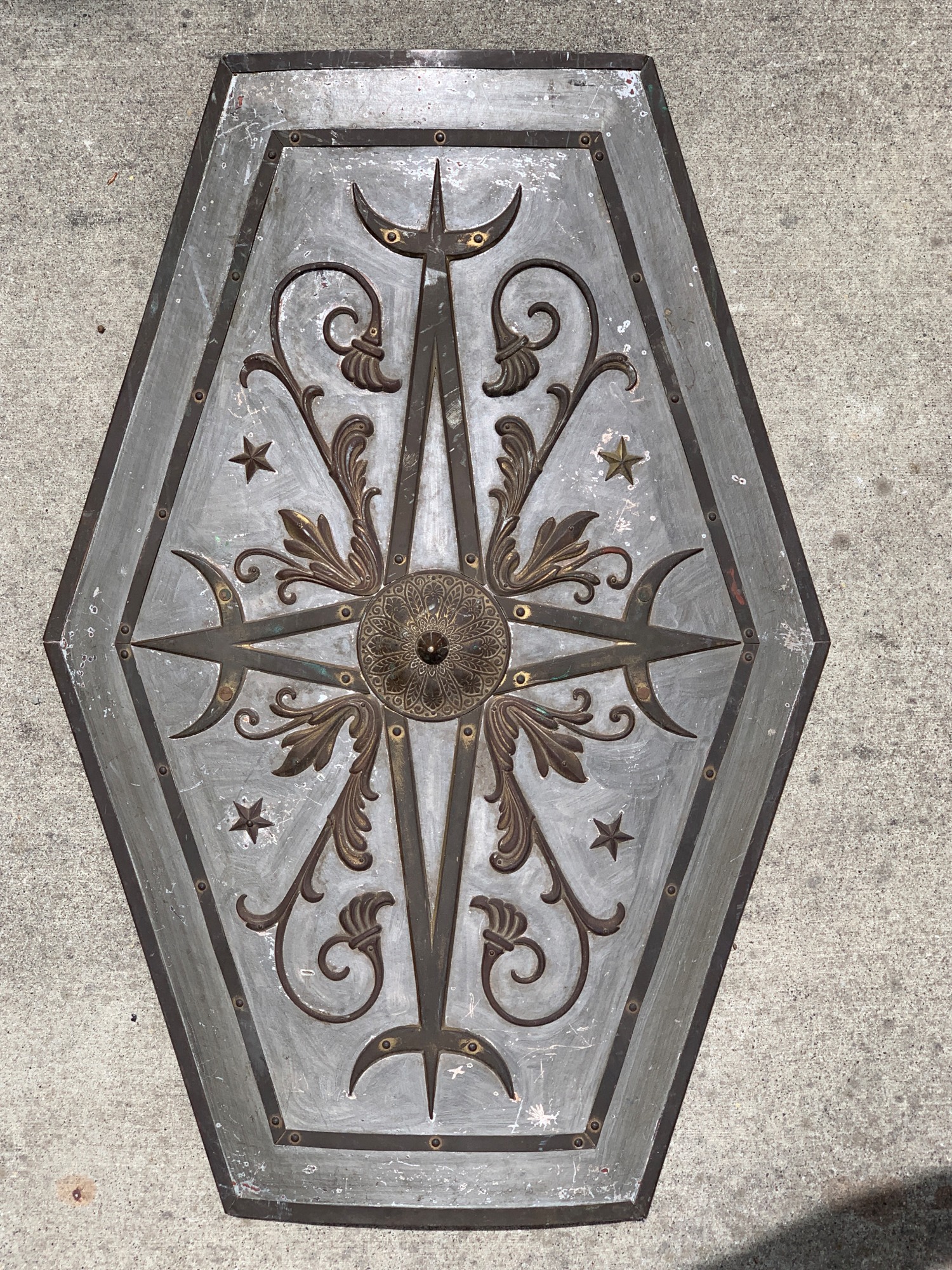 Shield used in the 1932 Cecil B. De Mille movie, Sign of the Cross, as evidenced in the lobby card (from Mexico) for the same movie which is found in the Blackfriars Gallery collection.
