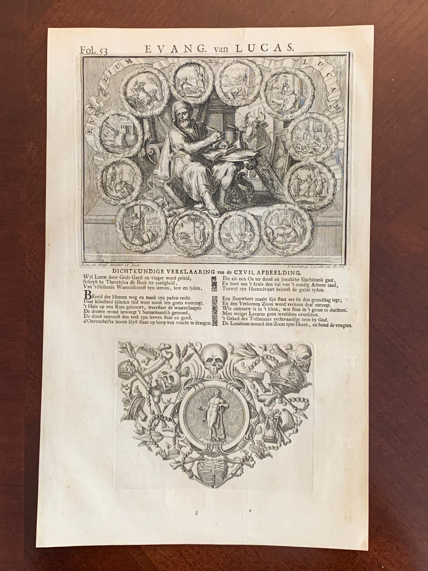 Folio numbers 28, 29, 45, 46, 53, 64, unframed from J. Lindenberg (Amsterdam), t Groot waerelds tafereel, waar in de heilige en waereldsche geschiedenissen en veranderingen zedert de schepping des waerelds.' The first edition was published in 1705; the third after 1707 when the plates were still fresh. The 1707 edition confirmed from online digital version at https://digi.ub.uni-heidelberg.de/diglit/basnage1707/0039 (accessed on 3/13/2020).