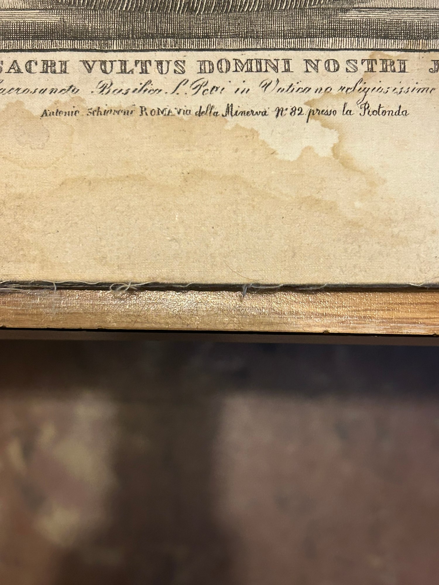 Each year, detailed copies were created of Veronica’s veil (usually about 15″ x 12″), then touched to the original veil, to a relic of the true cross, and to the spear that pierced Christ’s side. From there, a text inscription was placed at the bottom (or on the back) of the relic, and a wax seal placed on each.