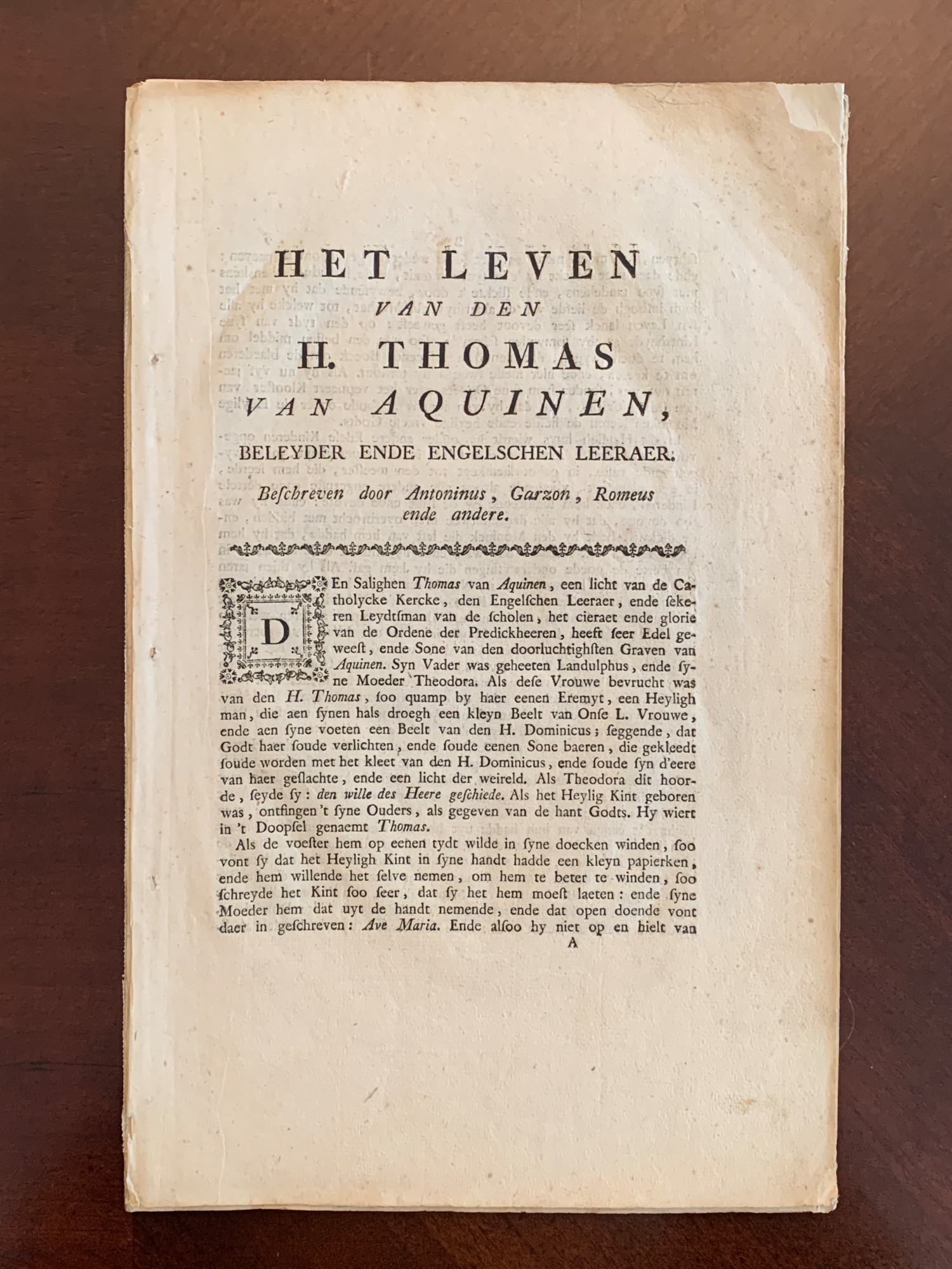 Republication of the original (1610) edition by Otto Vaenius (van Veen) of Vita D. Thomae Aquinatis. Othonis Vaeni ingenio et manu delineata. Published by Antoine Collaer and printed by Cornelius Galle, Brussels. Thirty engravings by Cornelius Galle, Cornelius Boel, E. van Paenderen and G. Swanenburg.