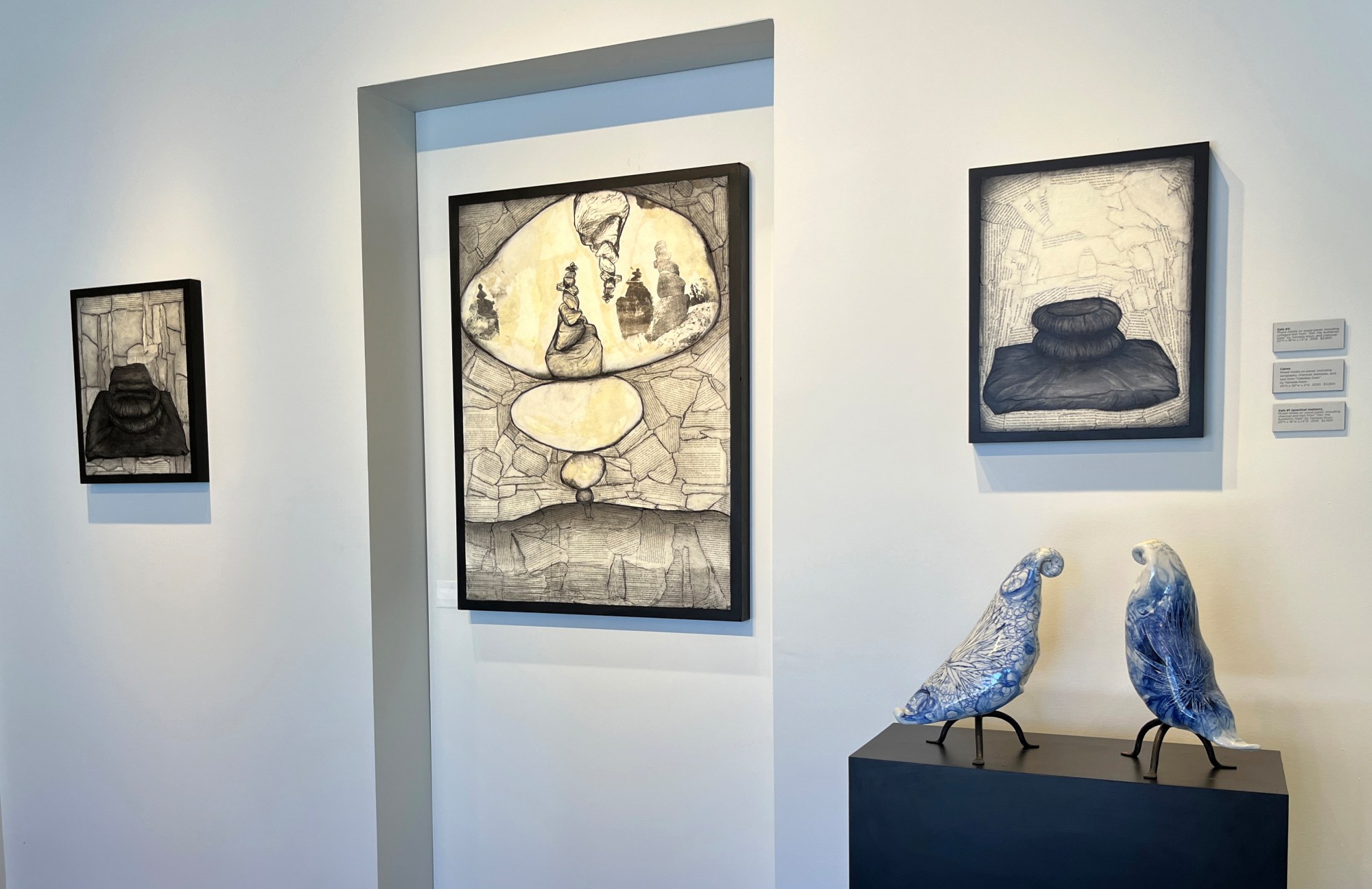 Installation view: cushions with birds