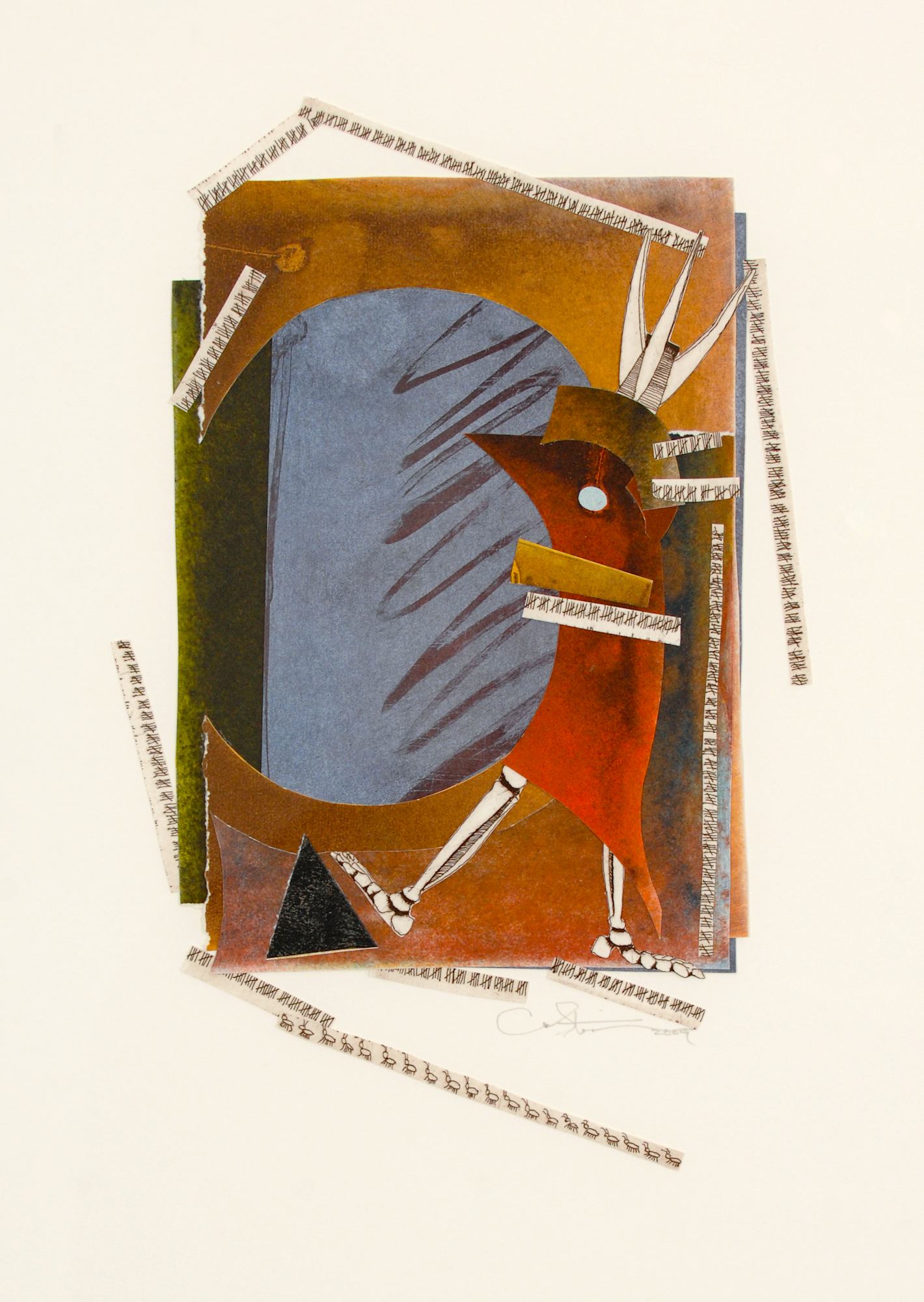 This is a framed collage created from fragments of intaglio prints (etchings and engravings)
