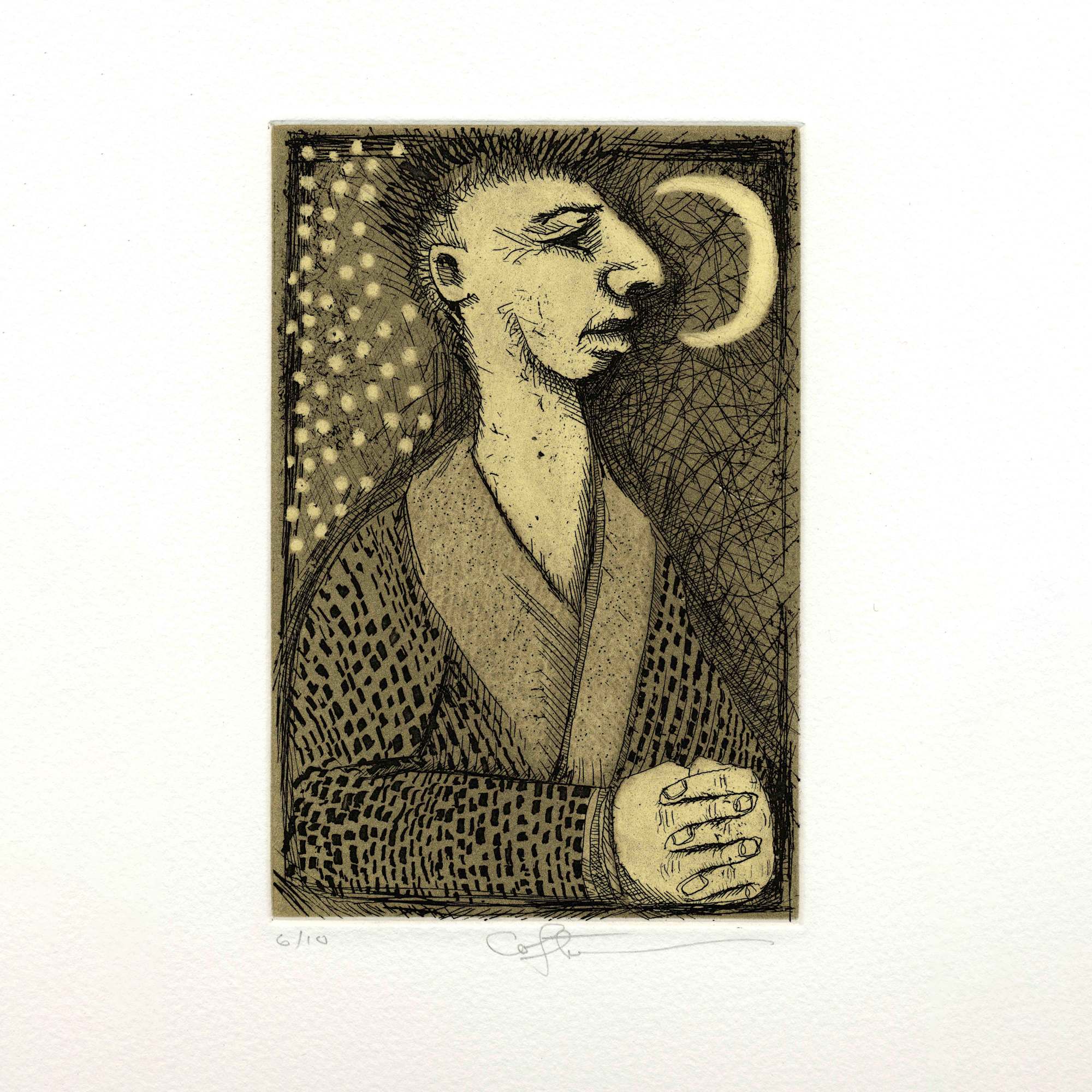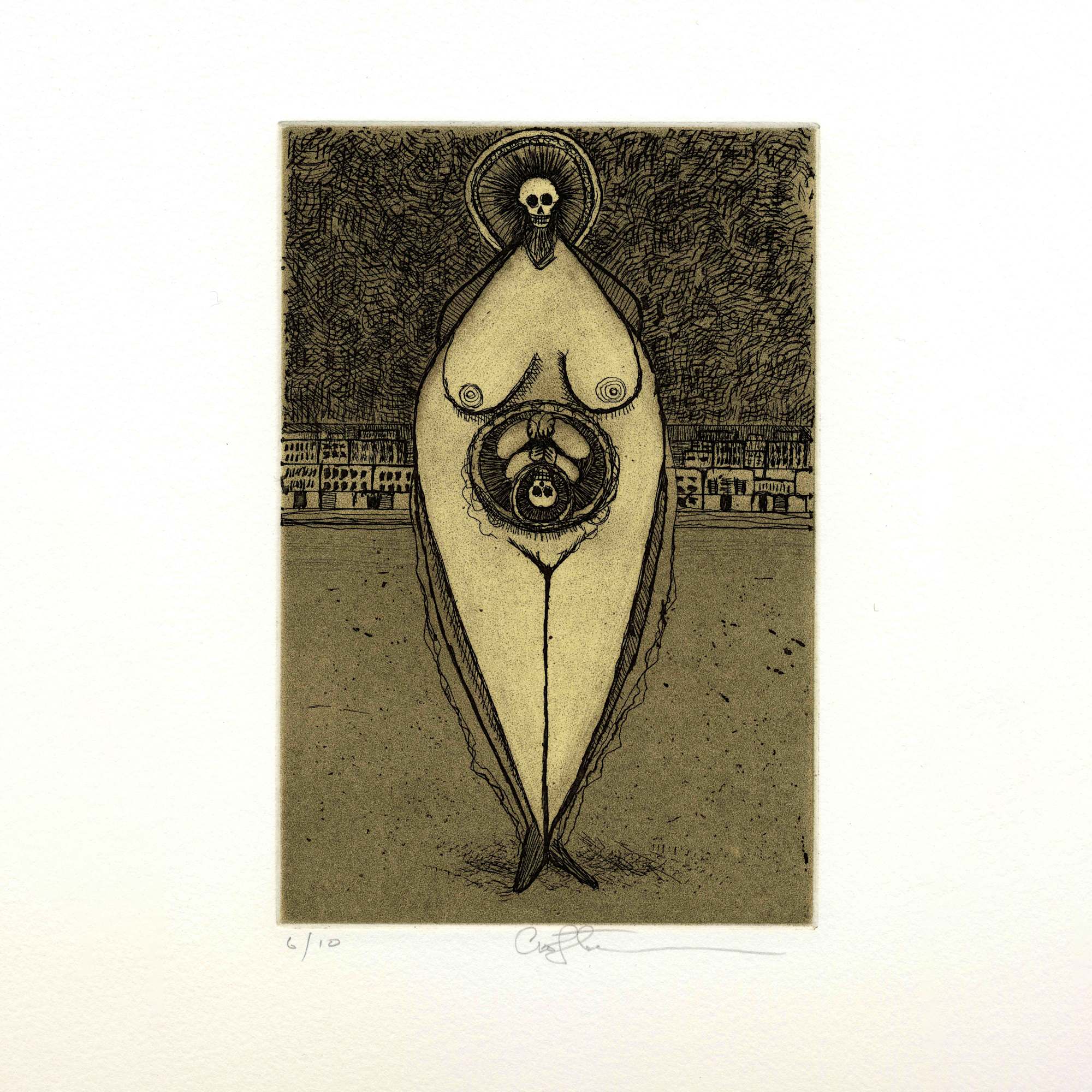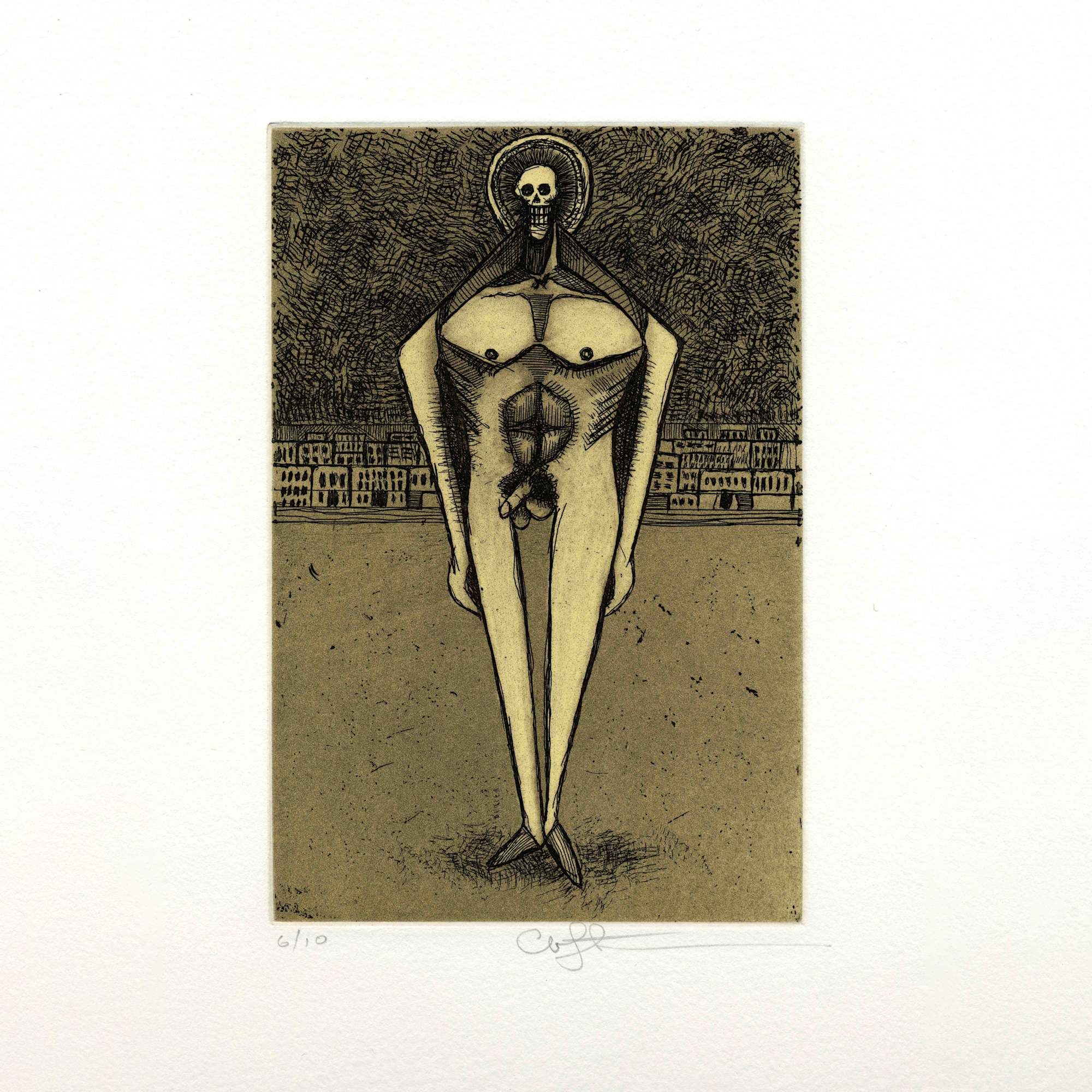This is a series of five images drawn on wax covered copper etching plates during 2001 travel in Mexico to Oaxaca, Guanajuato and San Miguel de Allende. The set is presented in a custom cloth-bound folio.