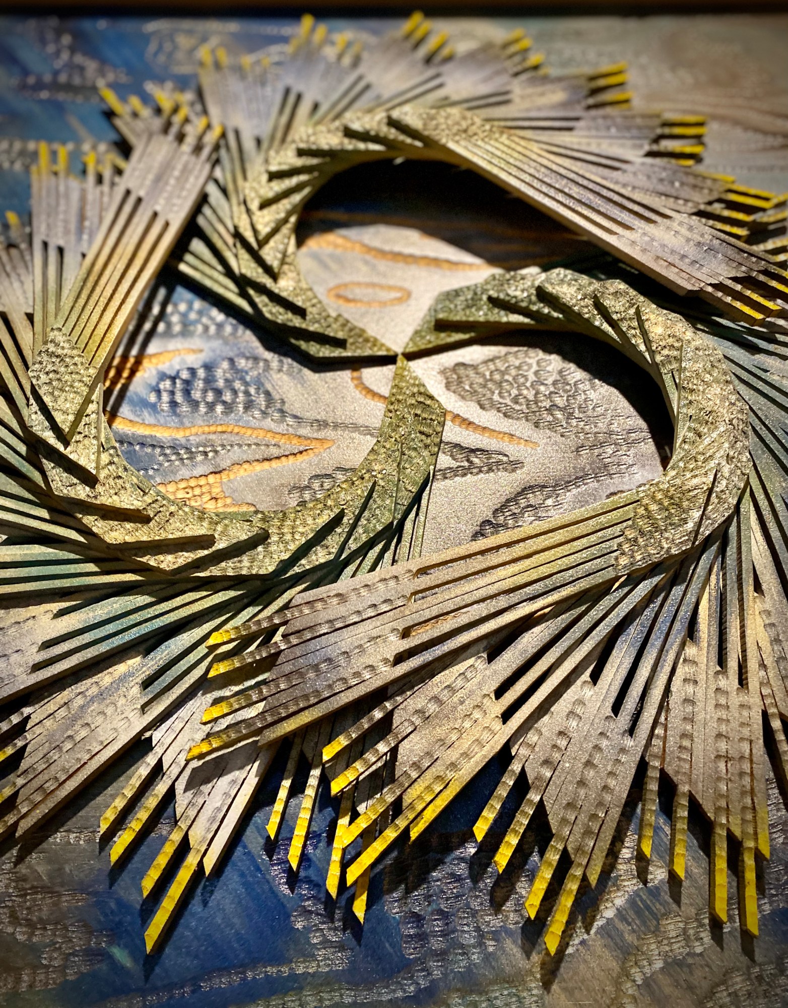 This piece is intended to convey dualistic meanings. The first, and more evident, would be its serpent-like characteristics. The second would be a connection to serpentine minerals...as it reflects a connection to the heart center, bringing our truest desires to life. This connection helps in our ability as humans to love and display compassionate emotions.