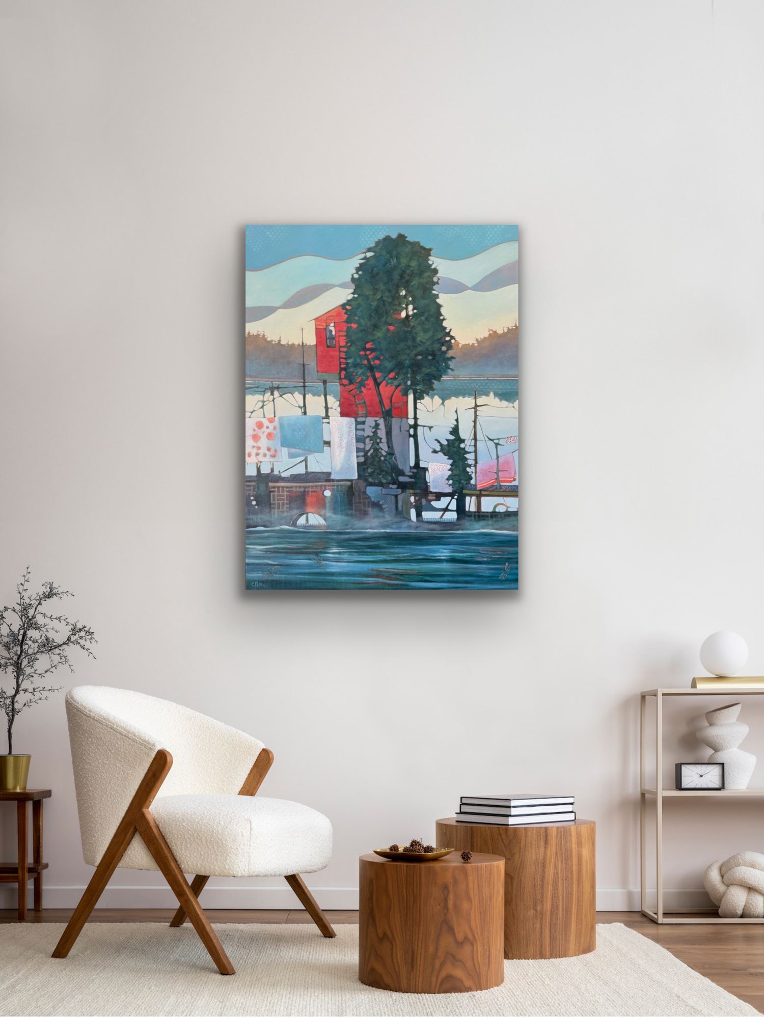 This painting began with the help of random people at the 2024 TD Art on the Avenue in Victoria. It took on a life of its own in the studio and even though most of the begining was covered over, the story emerged as: