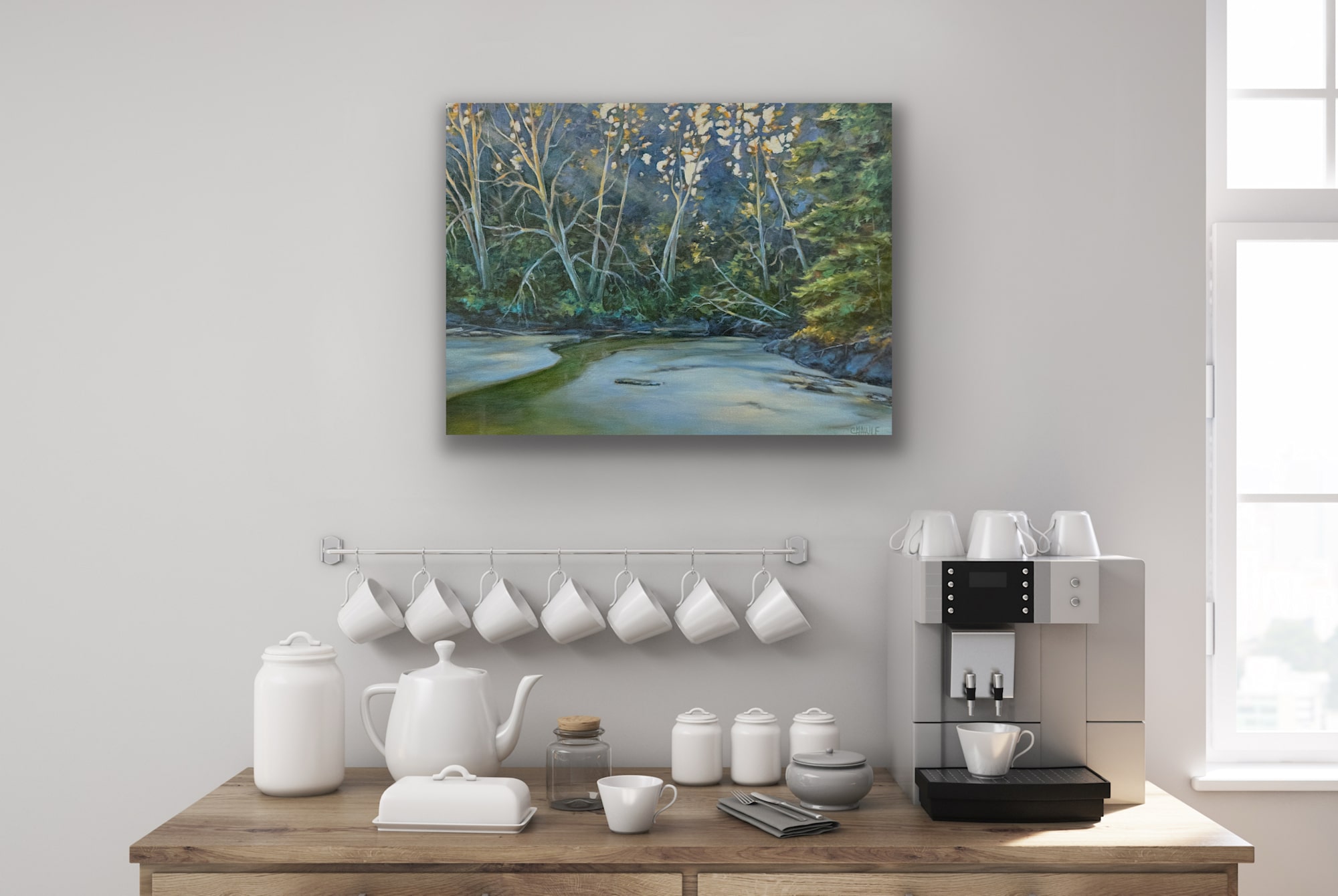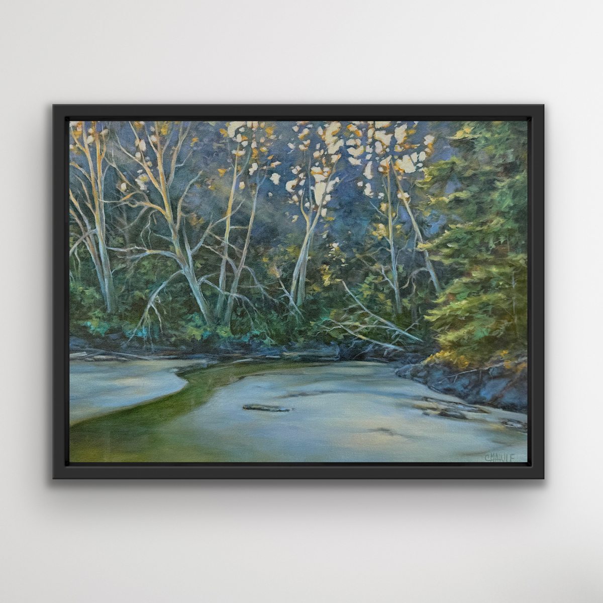The salty water has receded and the tiny fresh water stream trickles out from under the trees and carves it's very own lonely path to the sea
