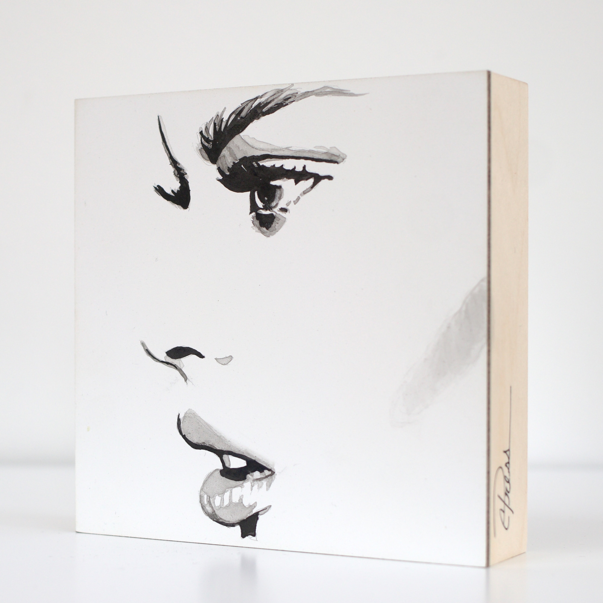 mixed media on wood block