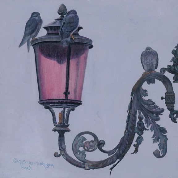 In Venice, These lovely lamps with Murano glass, make a beautiful perch for the resident pigeons.