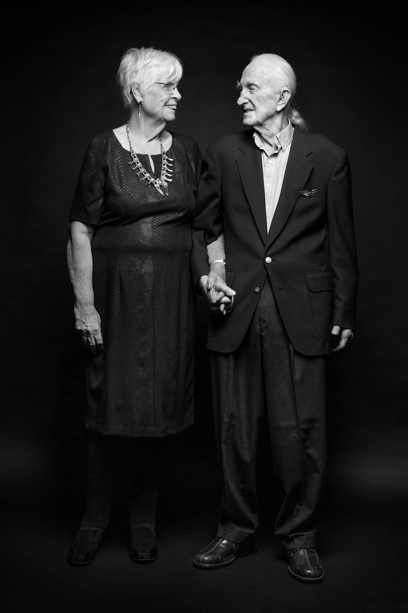Francis P. Riggs can trace his Gloucester roots directly to his multiple-great-grandfather Thomas Riggs who was the town clerk for 51 years in the late 1600s. His own father was the first Riggs to go "over the bridge" when he left Gloucester for Harvard Dental School and ultimately New York where Francis was born and raised. After high school, Riggs attended the Pratt Institute for one year. In 1942 he enlisted in the Army Air Corps to become a pilot. Upon completion of his training, Riggs shipped over to England where he flew C-47 transports, moving troops and supplies to France. Transferred to Prestwick, Scotland, Riggs was billeted next door to Rosemary Clark and her family. They met at a 1945 New Year's Eve party at the Clark home. They married on September 13, 1945 in Ayr, Scotland. Frank was demobilized and shipped home to New York three weeks later. Rosemary would follow in February '46, crossing the Atlantic aboard a cargo ship, "I wanted to get over to Frank." The young couple took up a cold-water flat in Brooklyn a blook from Pratt Institute where Frank finished his degree in Industrial Design. Almost immediately they left NY to live in Gloucester full-time, "Frank was in love with Gloucester." They raised their three children here until 1969 when Frank was given an opportunity to work and teach with a colleague at Brigham young University. They would spend forty years in Utah, returning regularly to Gloucester. It was in Utah that Frank turned to being a full-time sculptor. Rosemary became a self-taught interior designer, writing a book on the subject. In 2009 they returned once again to live full-time in Gloucester. They no have eight grandchildren and fifteen great-grandchildren (at the time). Rosemary volunteers at the Grace Center. They were photographed on their 70th Anniversary.