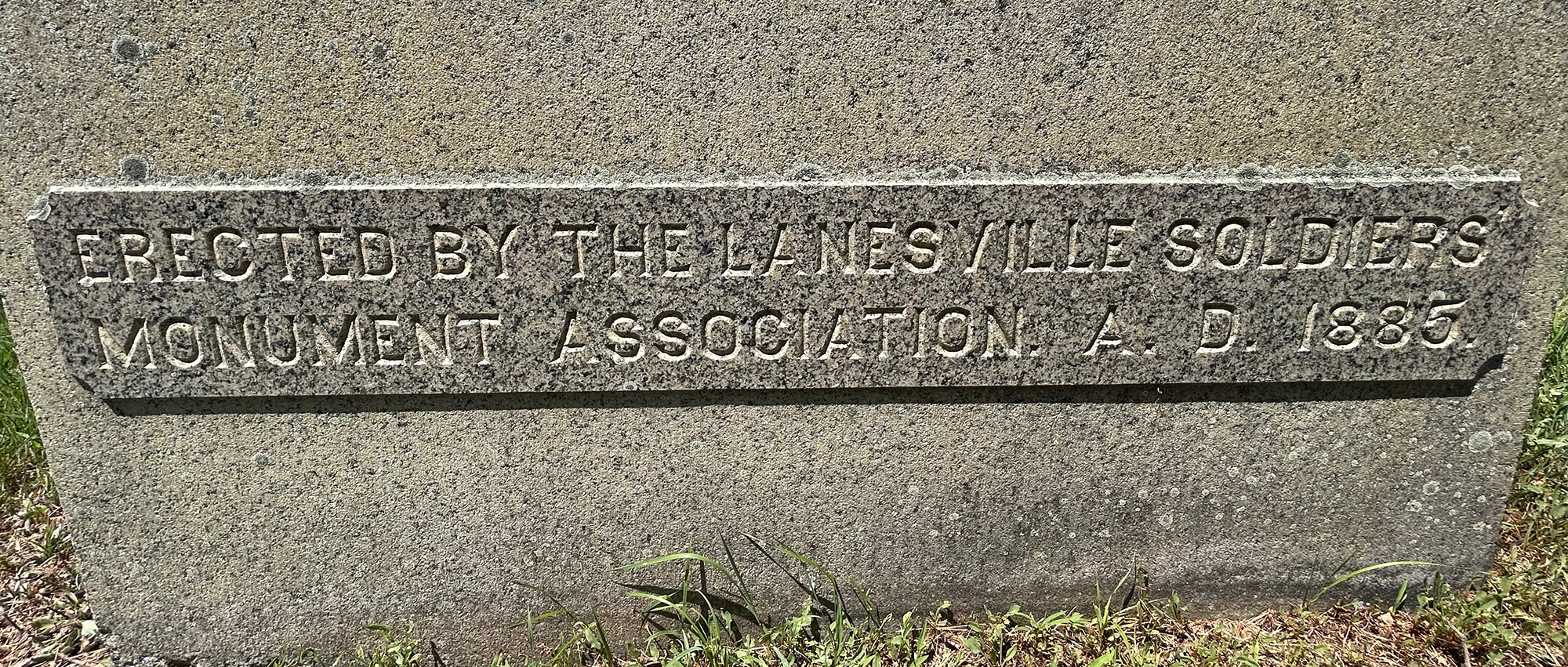 “In memory of our honored dead, who fought for the preservation of the Union 1861-1865. Erected by the Lanesville Soldiers’ Monument Association, A. D. 1885.”