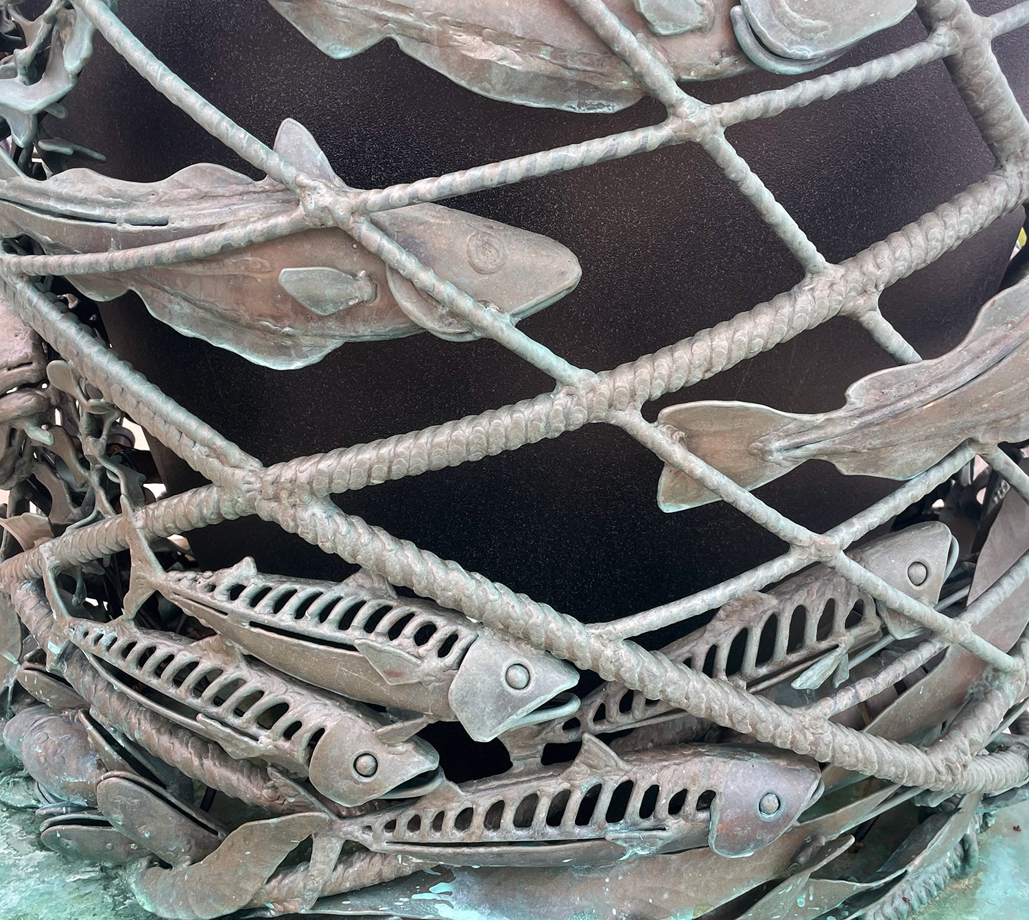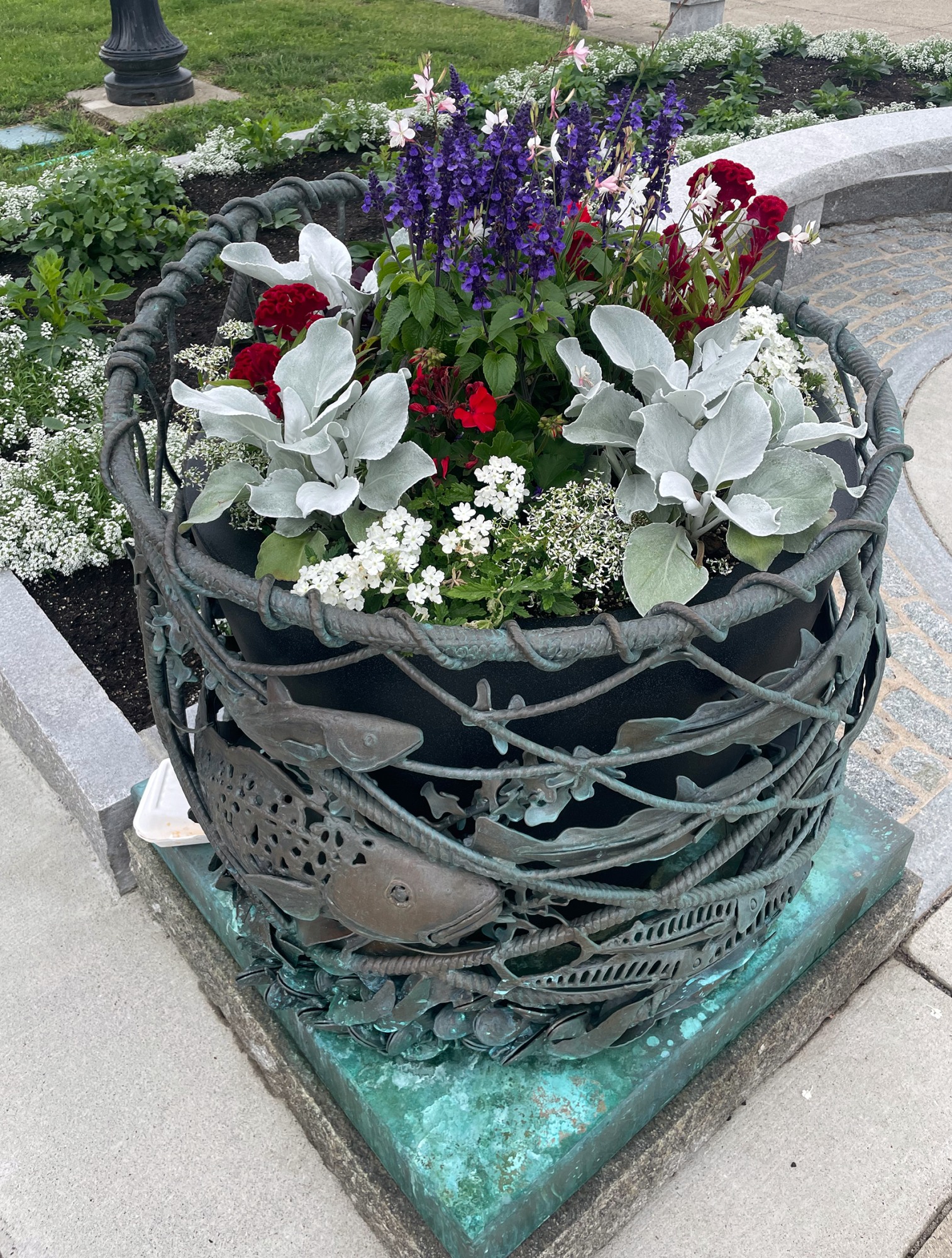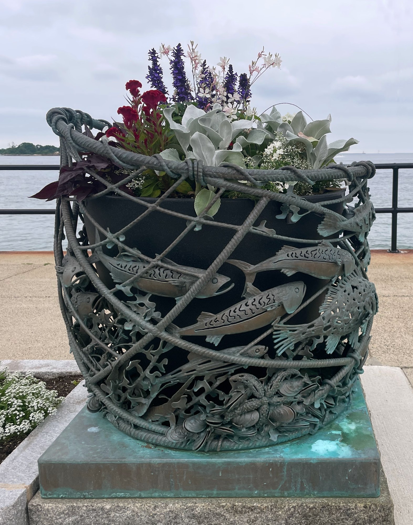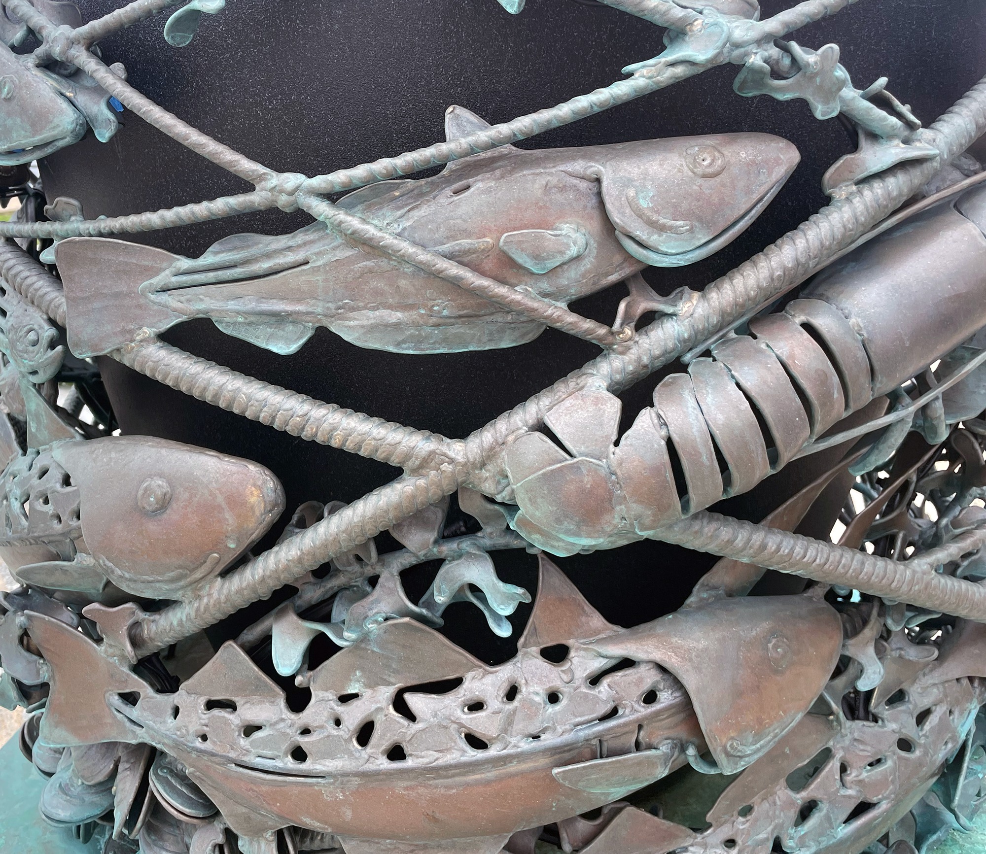 To continue the support for the current statue known as the “Man at the Wheel”, we designed what could be considered an accessory to the existing theme. These “Fish Baskets” hold the treasures of the sea, capturing a moment of “A day in the life of the Gloucester fisherman.”