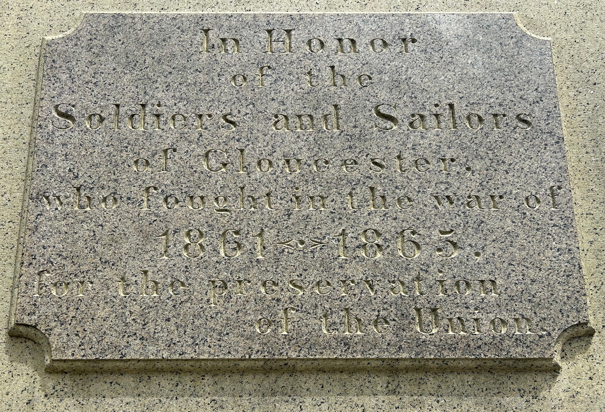 The city's primary monument is an imposing one, located by City Hall and dedicated on September 11, 1879. Its main inscription reads, Gloucester's City Monument