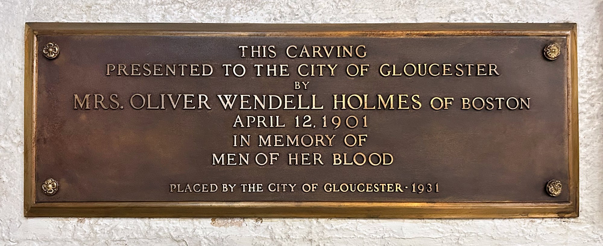 Wood relief carving depicting pieces of a sailing vessel - "A ship wrecked sailor buried on this coast bids you good sail full marray a gallant ship , when we were lost, weathered the gale."