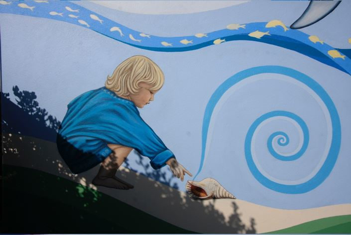In the workshops, the students nominated which marine animals they would like to include in the mural’s composition. The student's observational drawings were incorporated into the Mullaloo Beach sign. The artist then composed the two mural designs, depicting children interacting with the marine animals to reflect their connection to nature and the project.