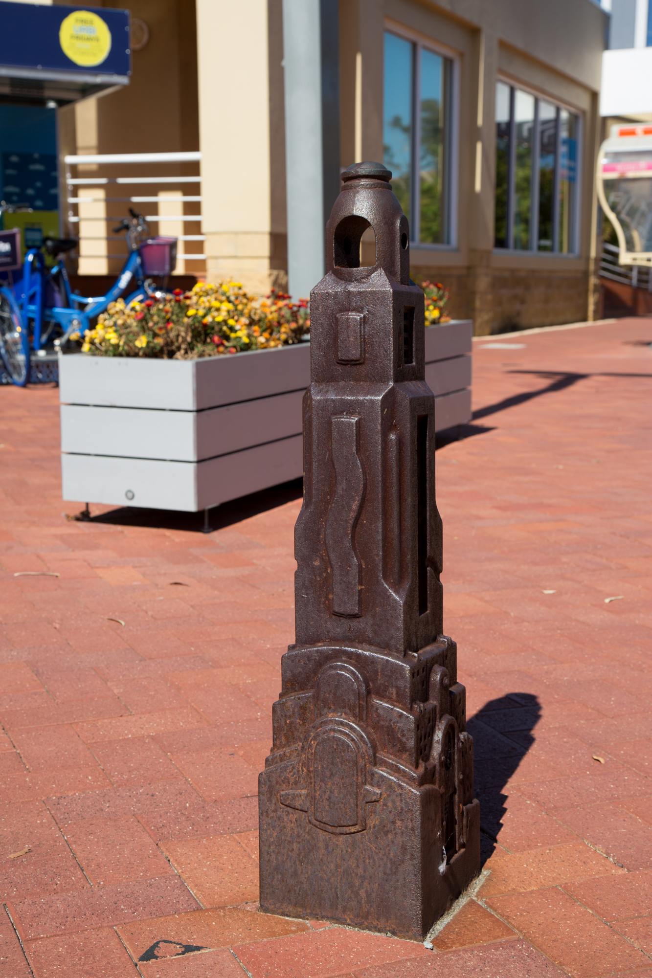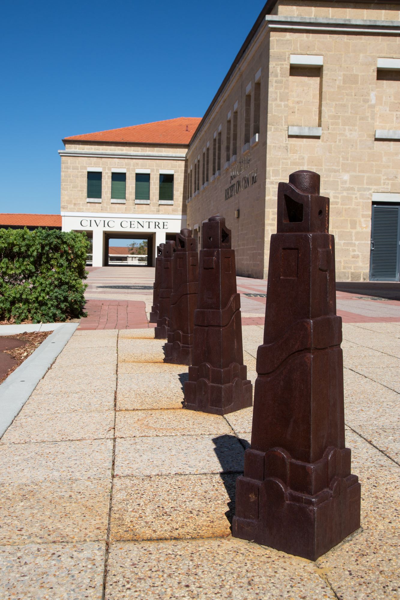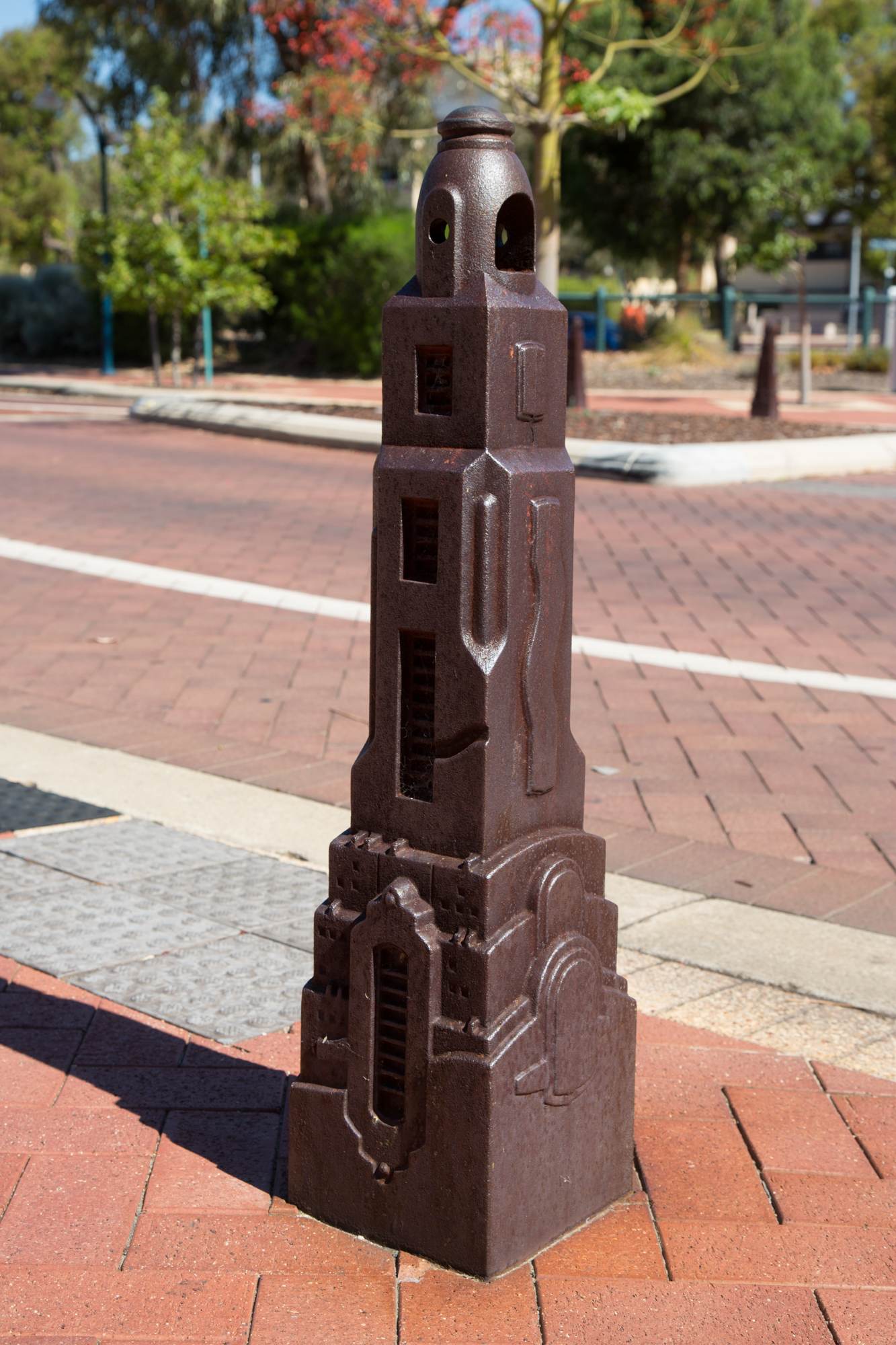 Referencing the aesthetics of the 1920’s German expressionist film, Metropolis, Dailey’s bollards populate the streetscape of Joondalup.