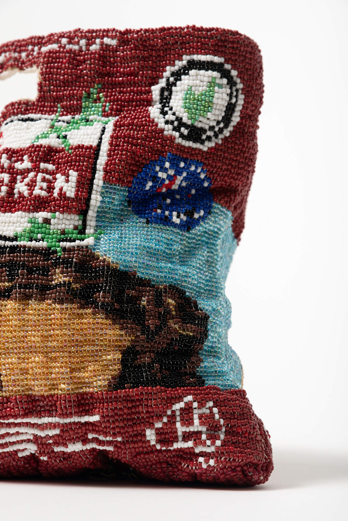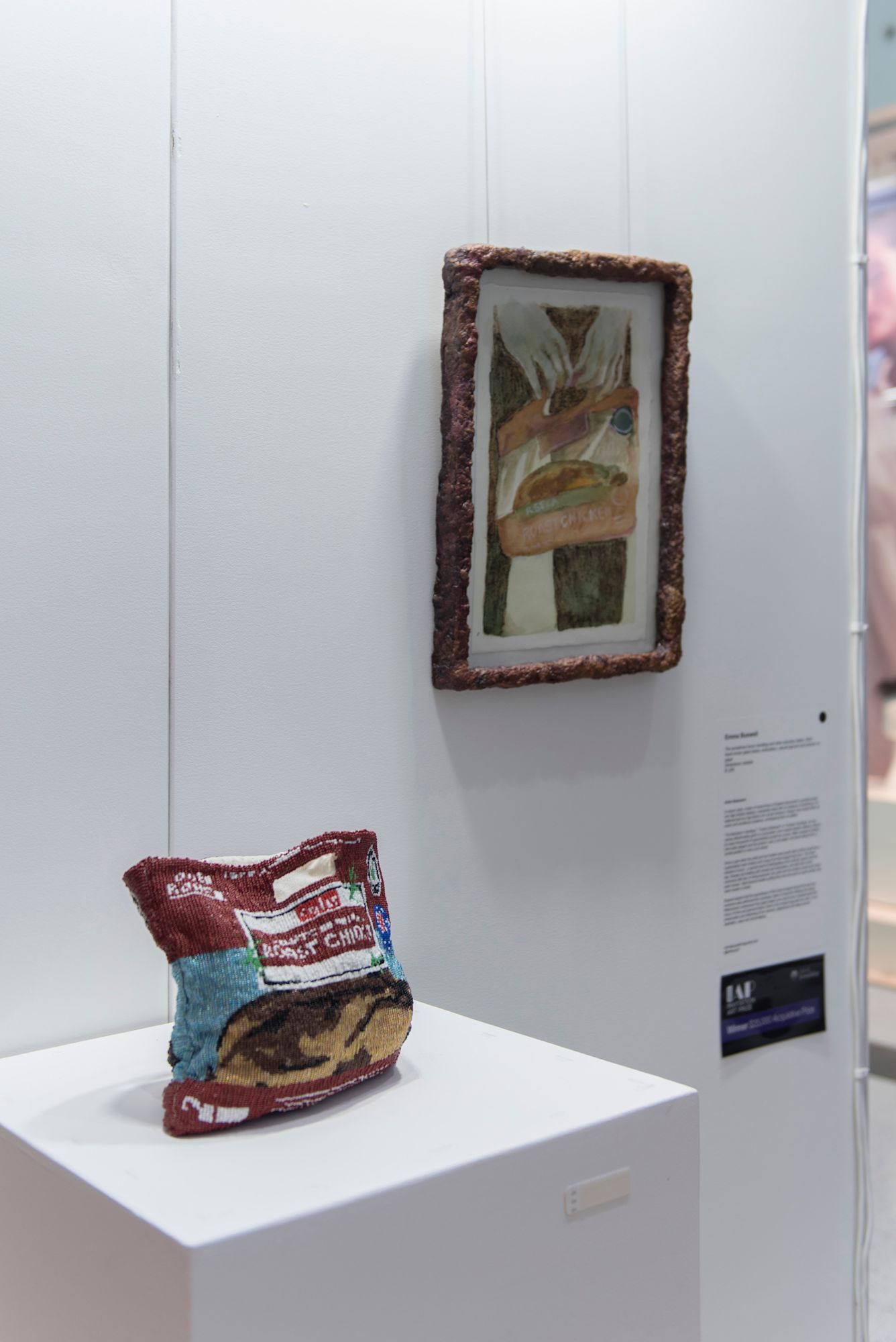 Buswell asserts that the specialness of this treat is based around the fact that someone else performed the necessary tasks to bring this offering into being. Meticulously constructed from glass beads over many hours, Buswell invests the luxury of time and personal labour back into the chicken bag with her work. It is a preservation and reframing of her memory, objecthood and ideas around aspiration, class, and circumstance.