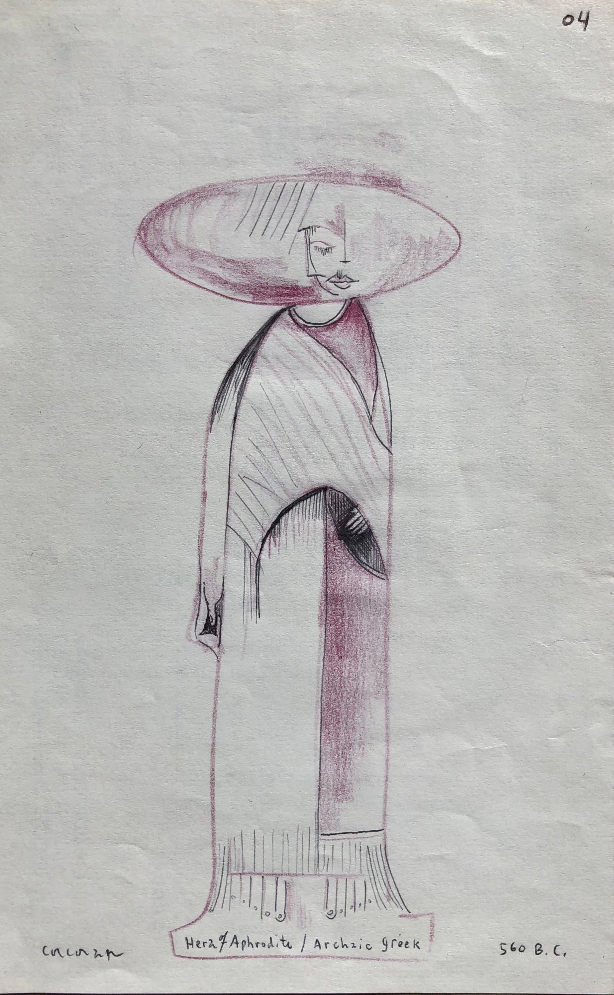 This drawing in black pencil & red conte crayon was the first sketch/idea for the Archaic Impression in Time series...