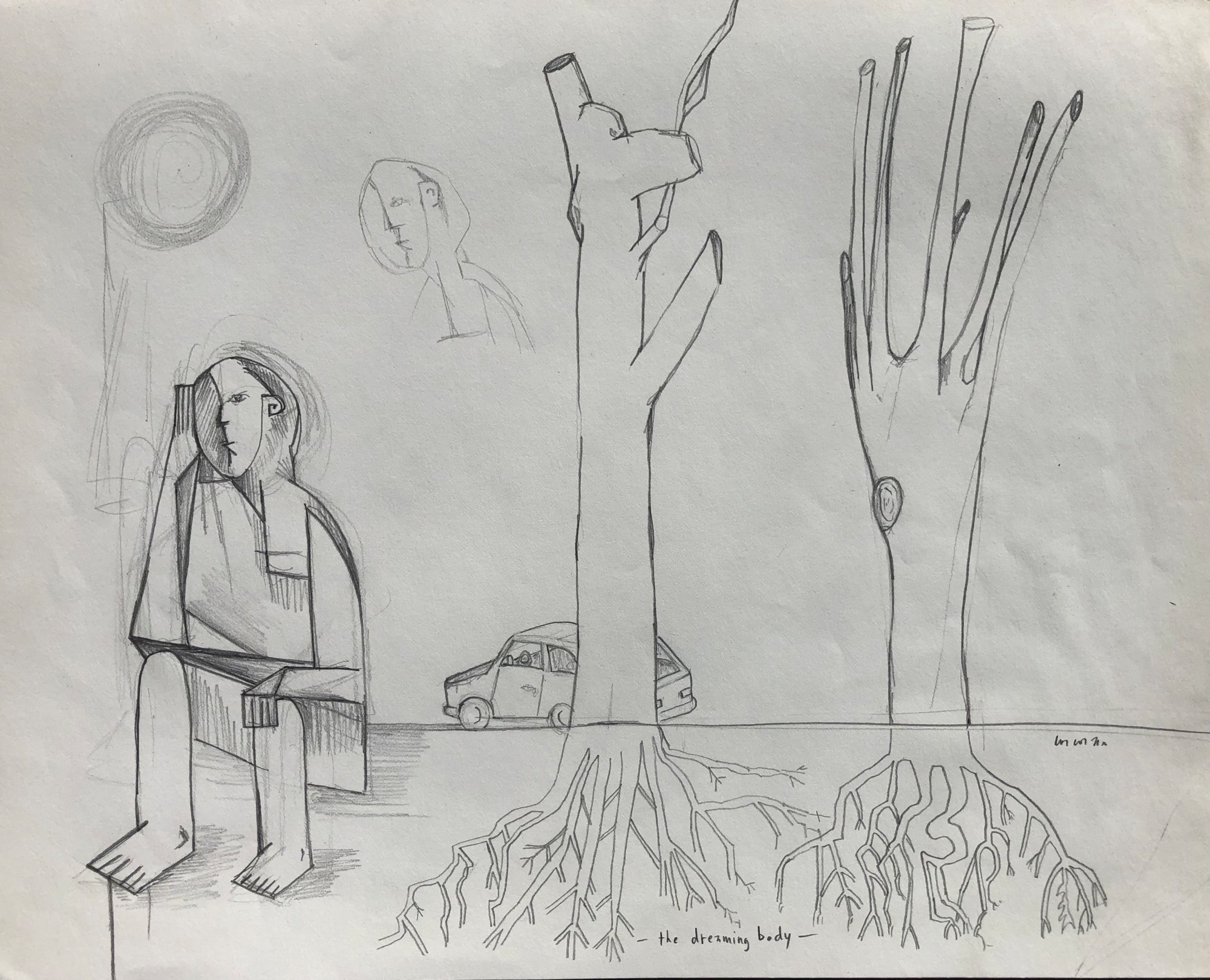The dreaming body drawing was a sketch in the Abstract Thinker series. A watercolor was also created after this drawing.