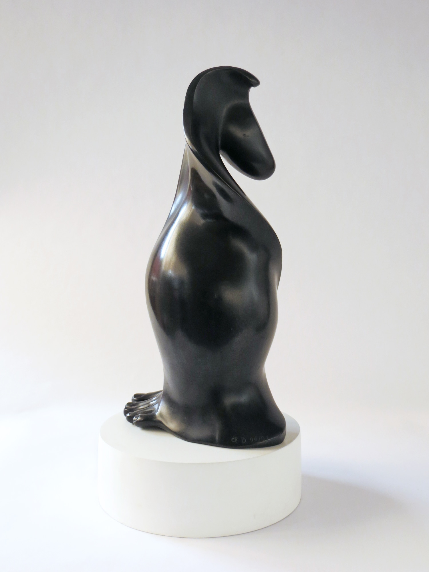 Forma parte de una serie de 6 esculturas, cada una de ellas una ampliación personalizada de una pieza del juego de ajedrez abstracto titulado «Llama». Este es el caballo.