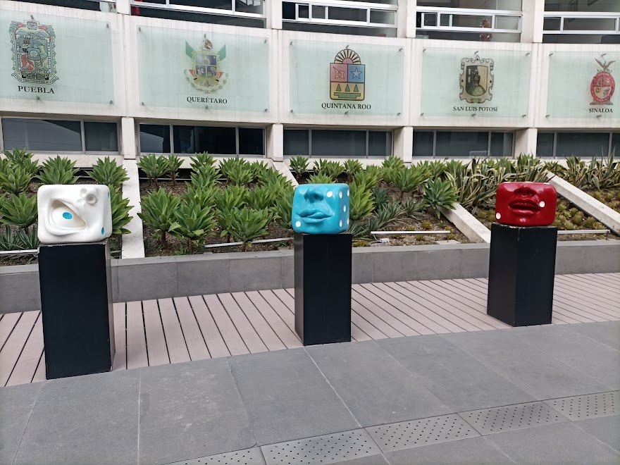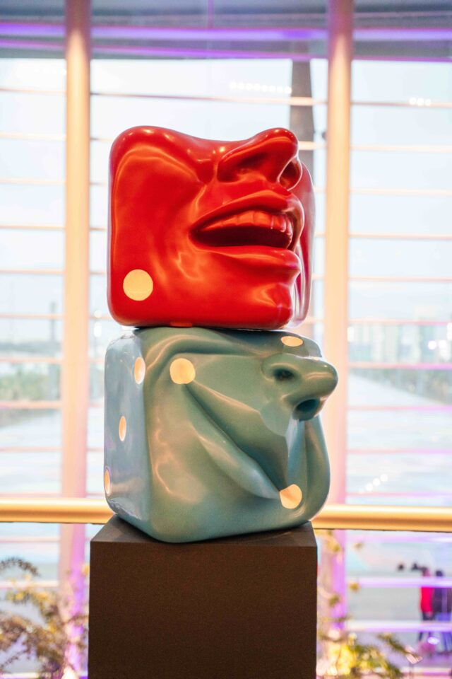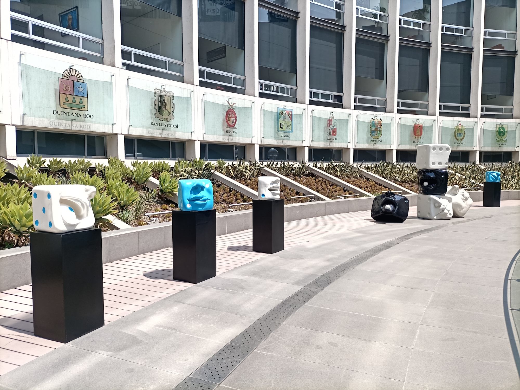 This sculpture is made of 4 Dadadice, that can be placed in any way desired. They can also be fixed in the position you choose, or piled up on a pole that lets you change their direction.