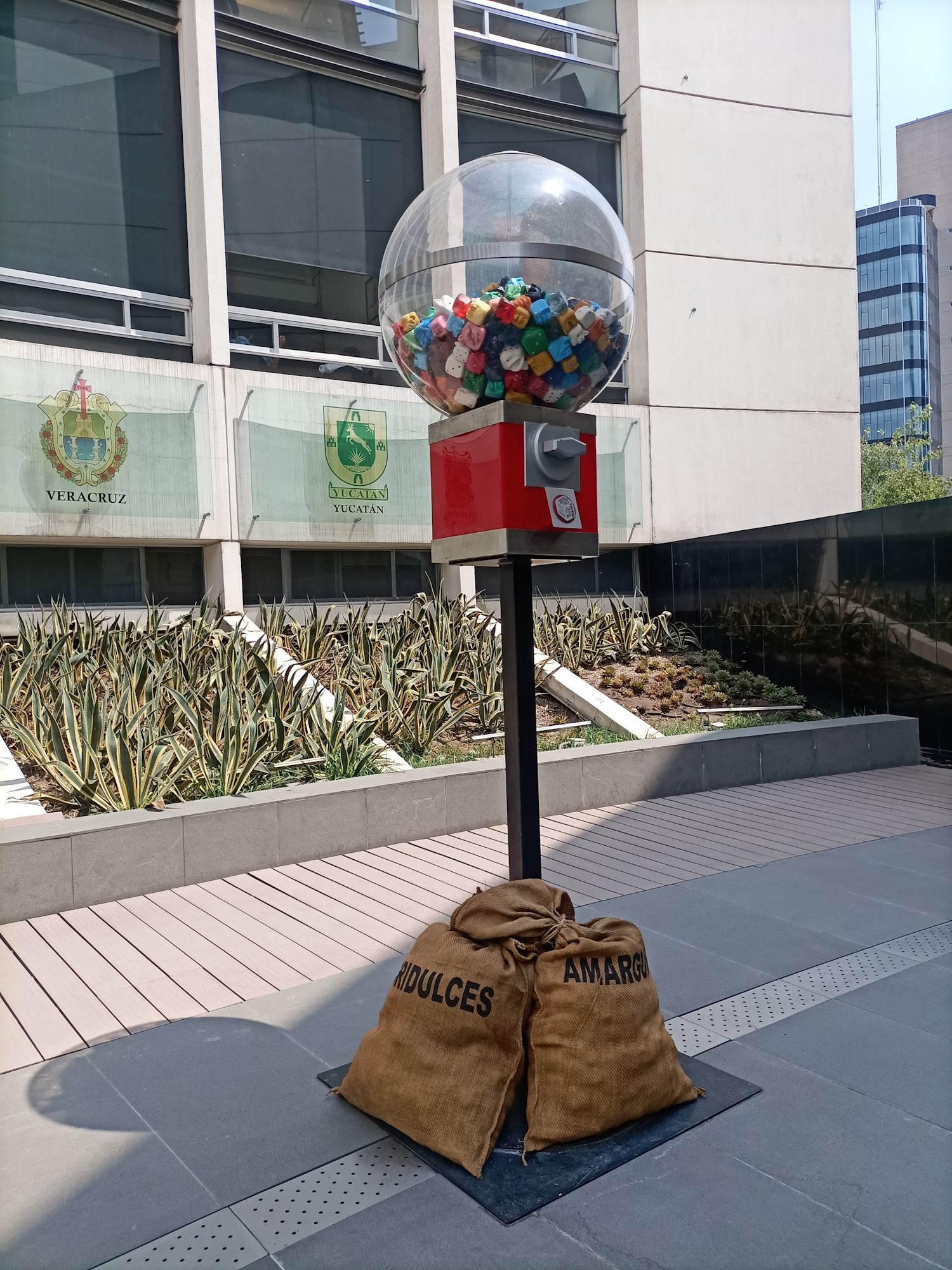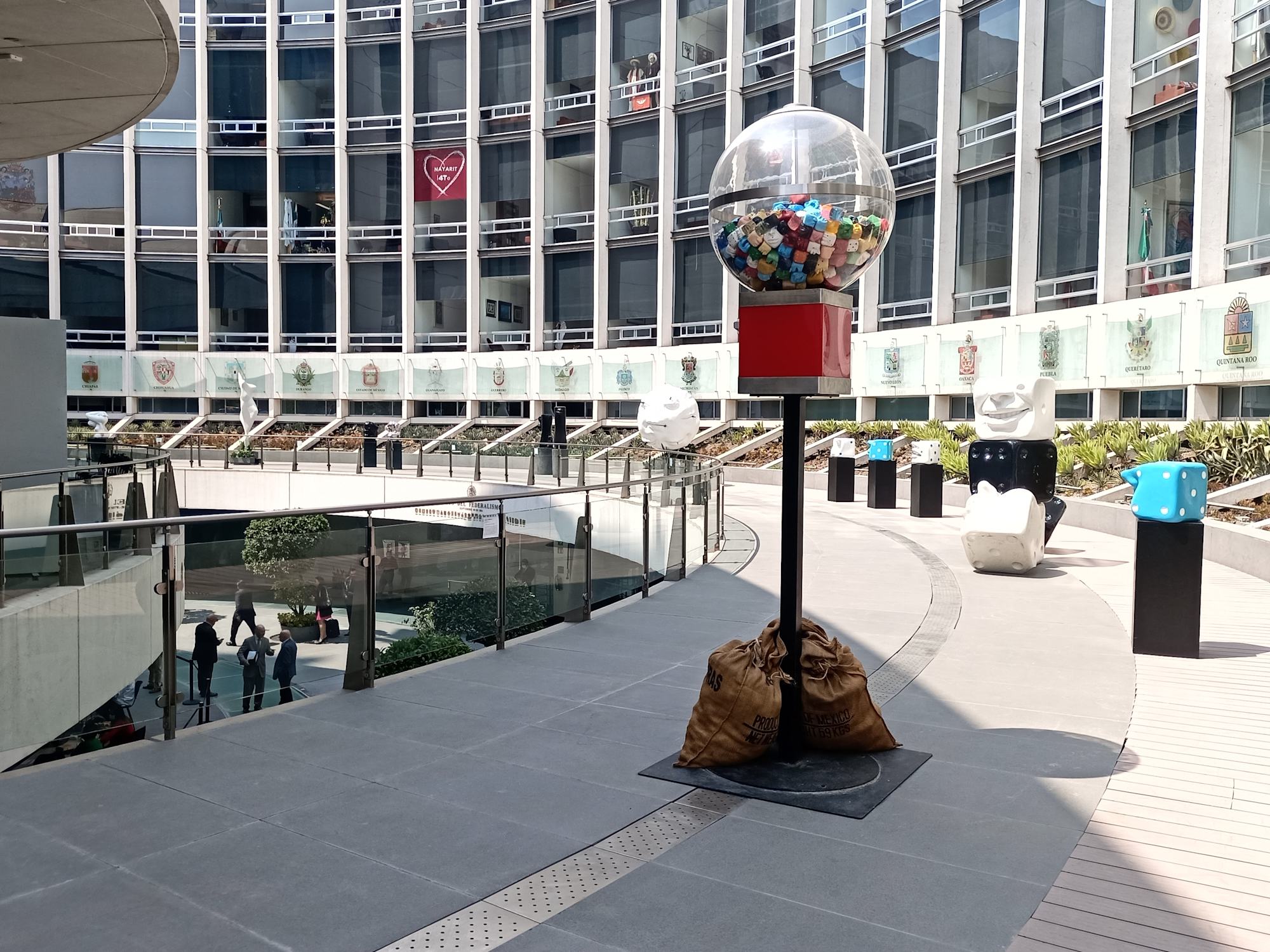 A giant gumball dispenser that awakens the inner child and reminds us to be amazed by the promises of a world full of possibilities. Inside, the "gumballs" in the shape of dice with faces of different expressions and colors, beautiful or ugly, happy or unhappy, resemble the experiences we attribute to chance. Life is made of an infinity of flavors and opportunities.