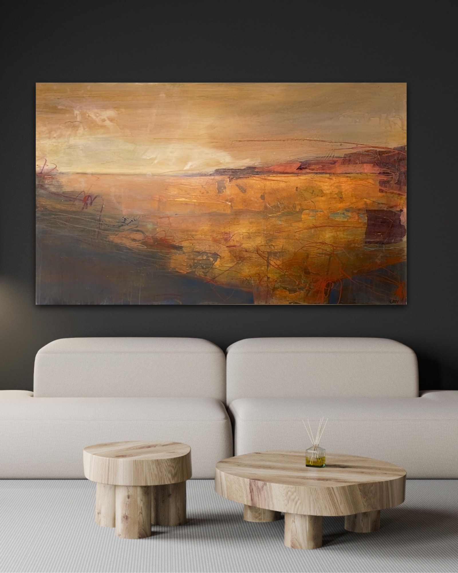 This large-scale abstract painting explores the idea of remembered conversations—fleeting echoes reaching beyond the present, toward something just out of sight. It captures the sense of memory as both intimate and elusive, suspended between reality and imagination.