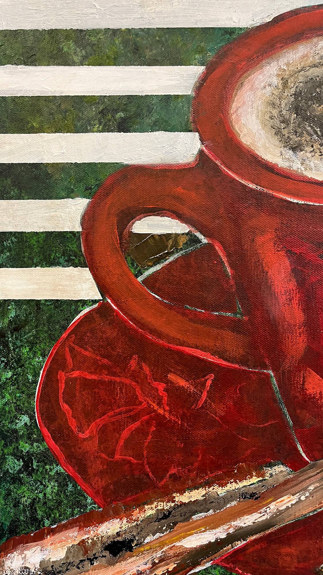 Stil: abstrakt-expressiv mit figurativen Elementen.
