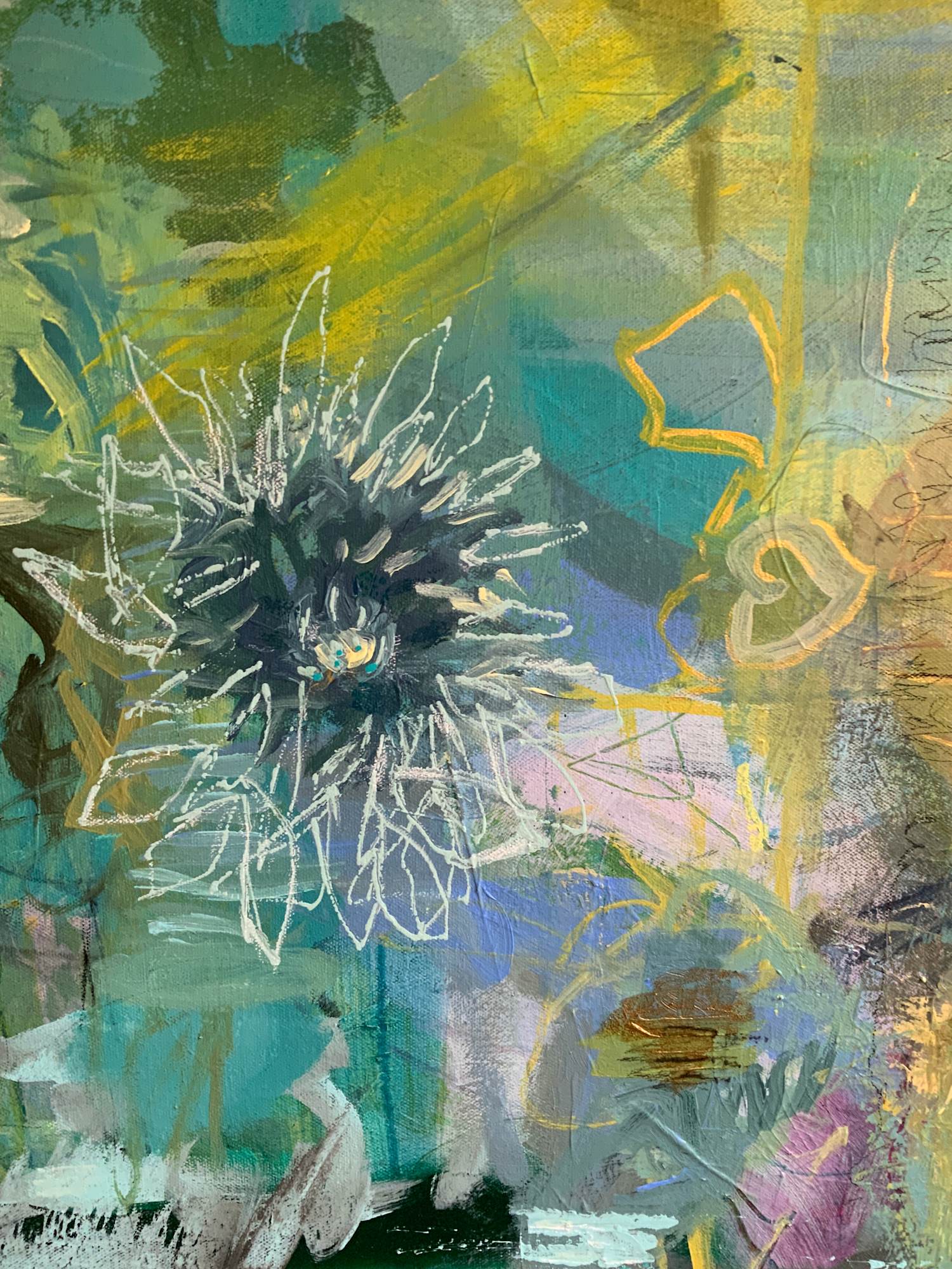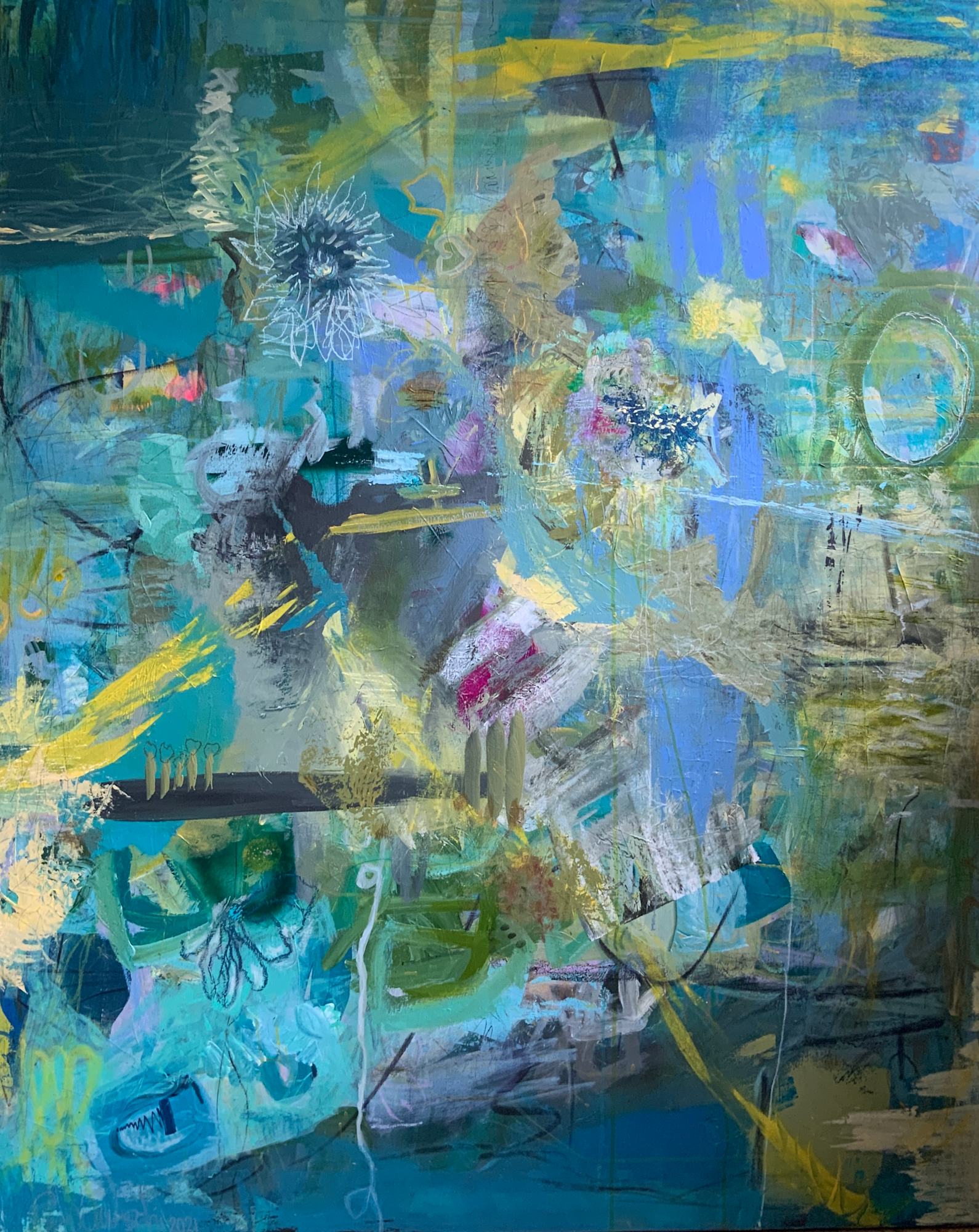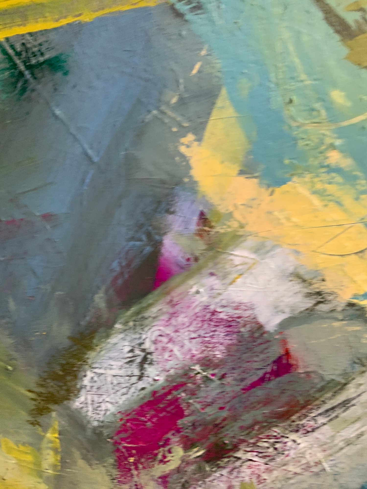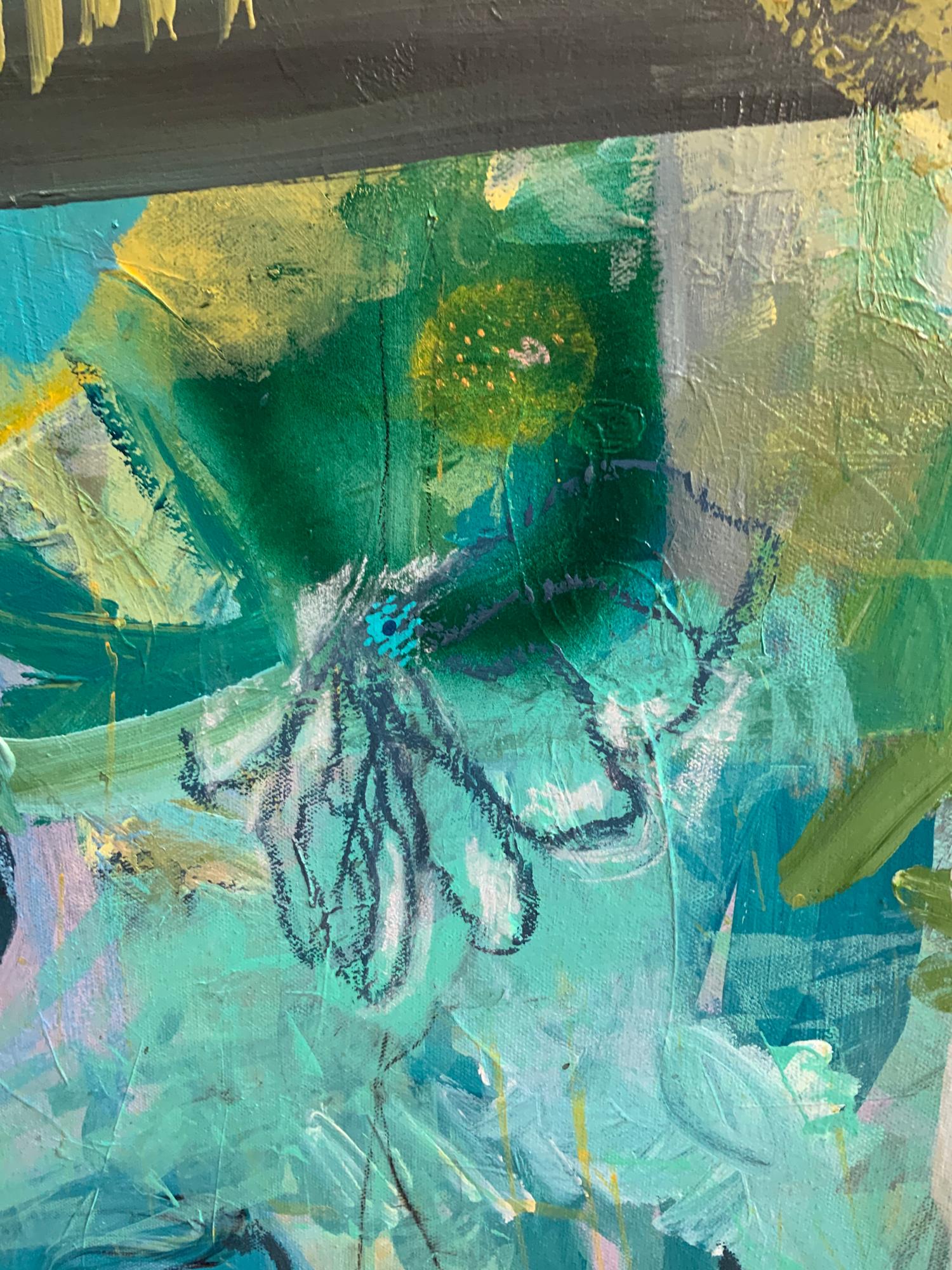 Stil: abstrakt-expressiv mit figurativen Elementen.