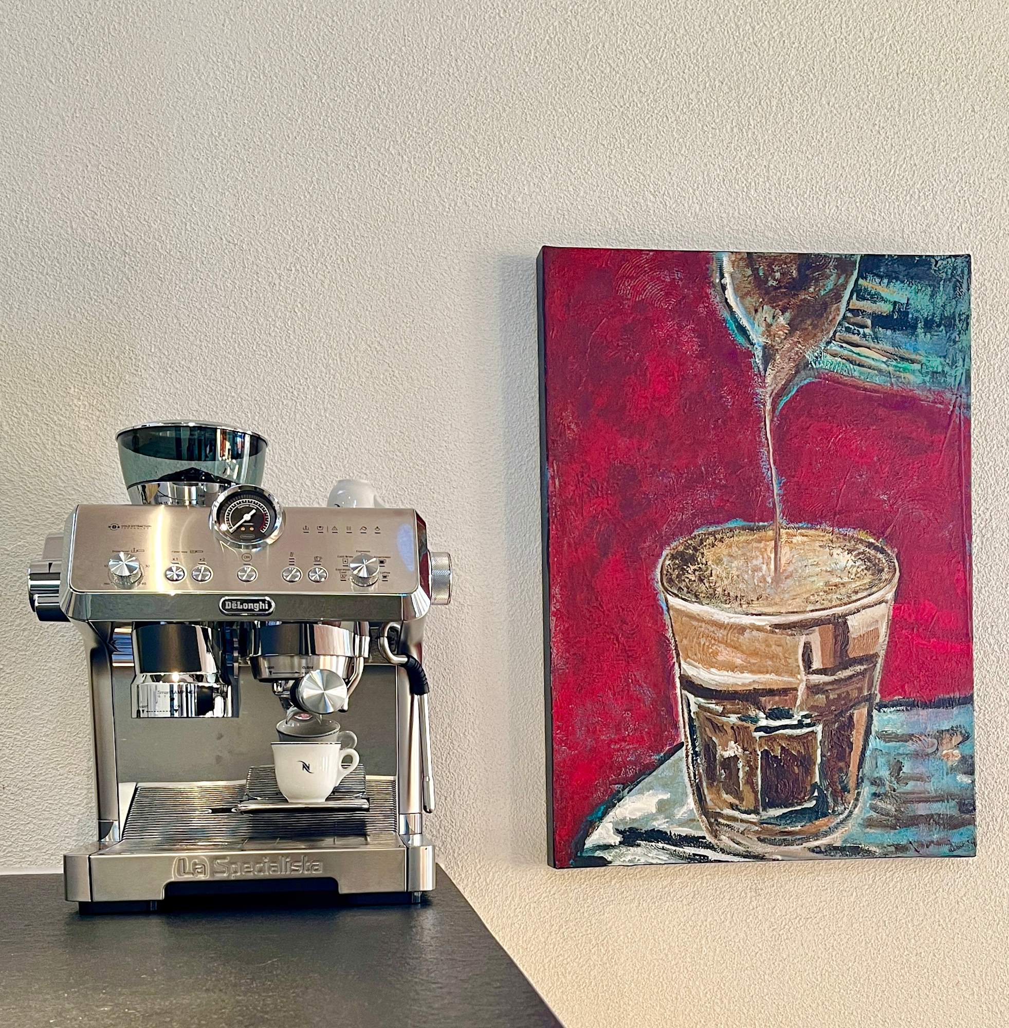 MessageA warm, almost tangible scene unfolds in this picture - the flowing movement of the pouring captivates the eye. The velvety liquid pouring into the glass seems like an invitation to contemplation, a moment of calm amidst the vivid intensity of the red background. It is as if time stands still for a moment to celebrate the simple, the beautiful, the familiar.