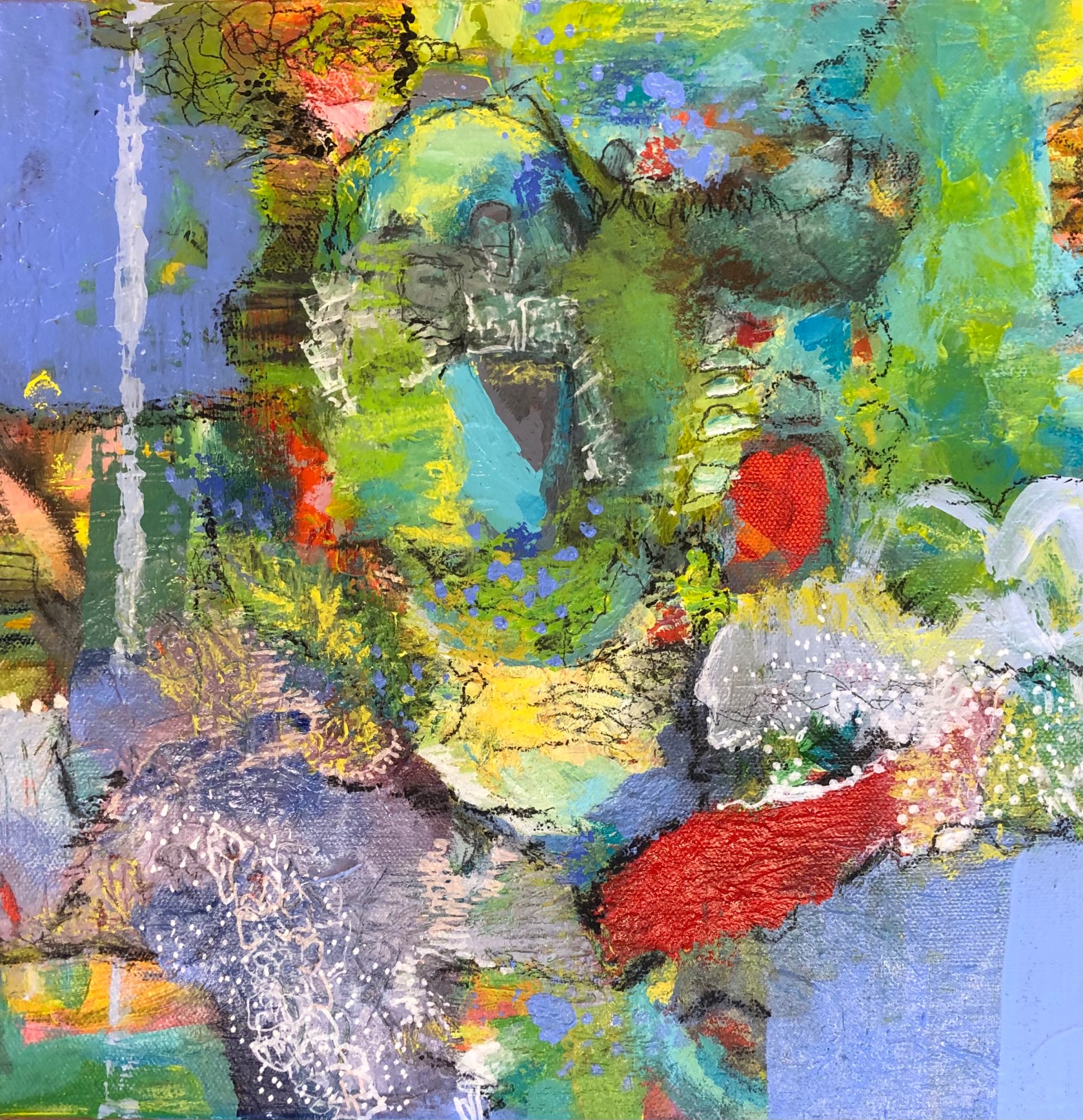 Stil: abstrakt-expressiv mit figurativen Elementen.