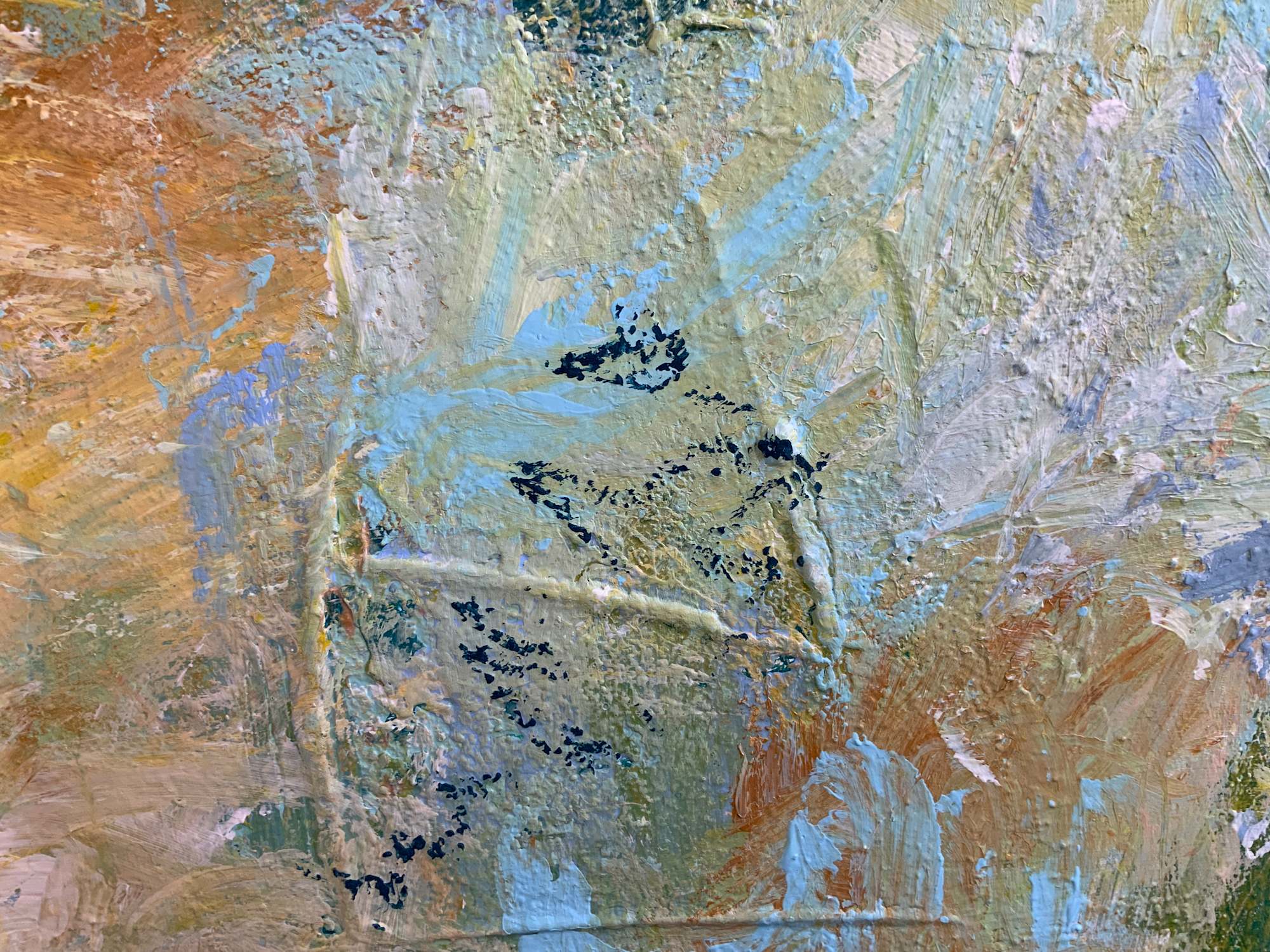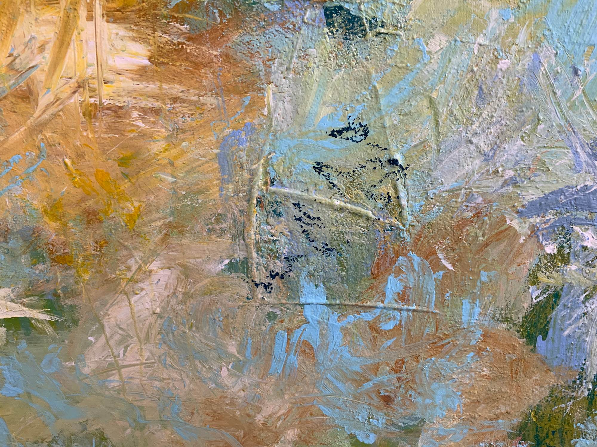 Stil: abstrakt-expressiv mit figurativen Elementen.