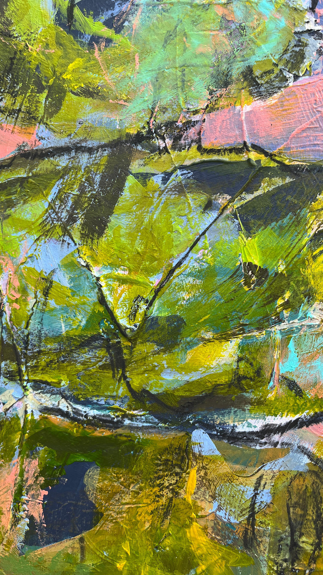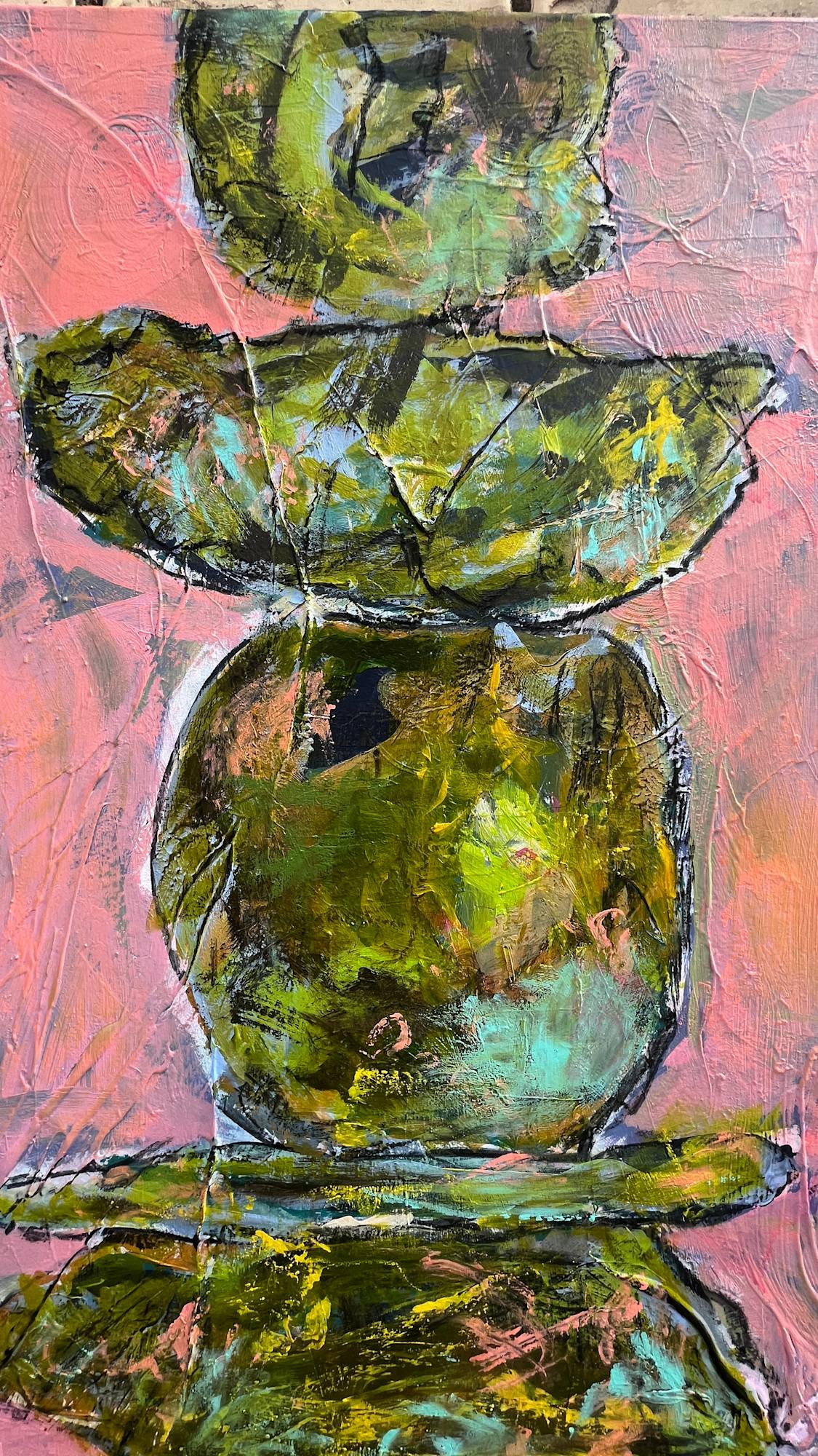 Stil: abstrakt-expressiv mit figurativen Elementen.