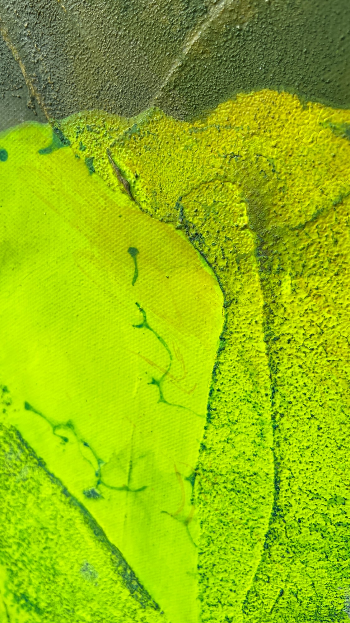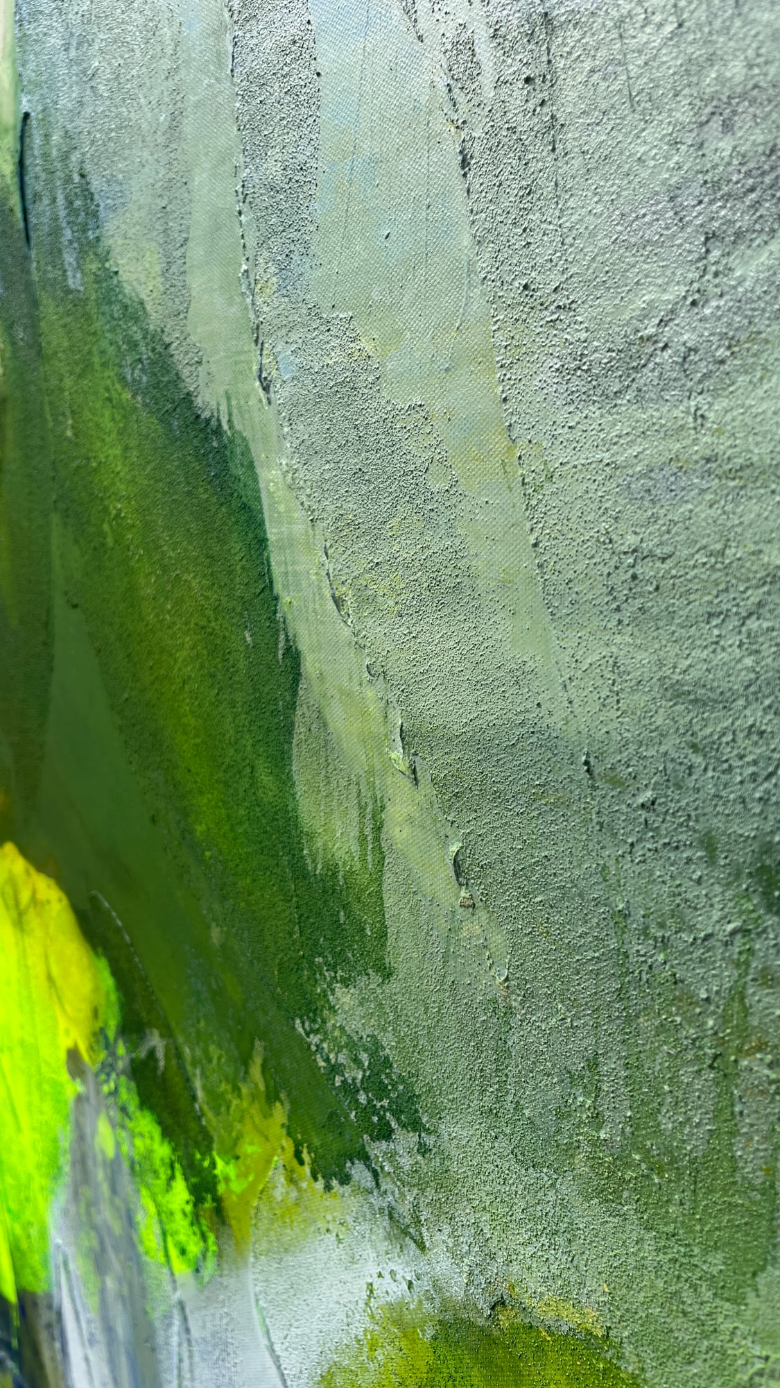 „Whisper of the Forest“ fängt die Essenz eines geheimnisvollen Waldes ein, in dem Licht und Schatten einen fesselnden Tanz spielen. Die intensiven Grüntöne und sanften Blautöne erinnern an frisches Laub und ein dichtes Blätterdach, durch das flüchtige Lichtstrahlen dringen. Die Texturen auf der Leinwand laden dazu ein, die Tiefe und Ruhe der Natur zu spüren und sich von ihrer mystischen Präsenz umhüllen zu lassen. Dieses Werk ist eine Einladung zum Nachdenken und zur Entdeckung der stillen Schönheit der Natur.