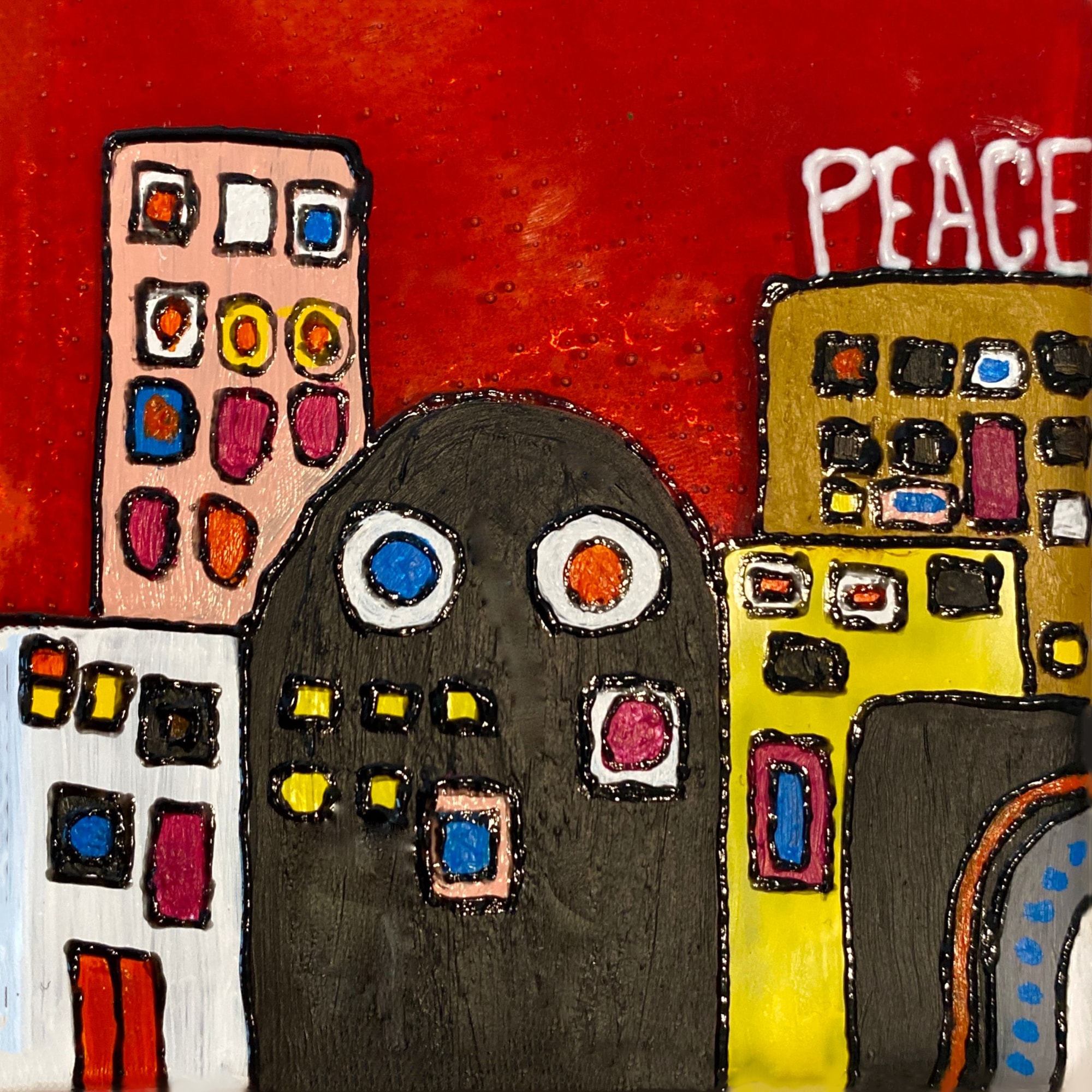 Handmade glass tile painted in acrylic