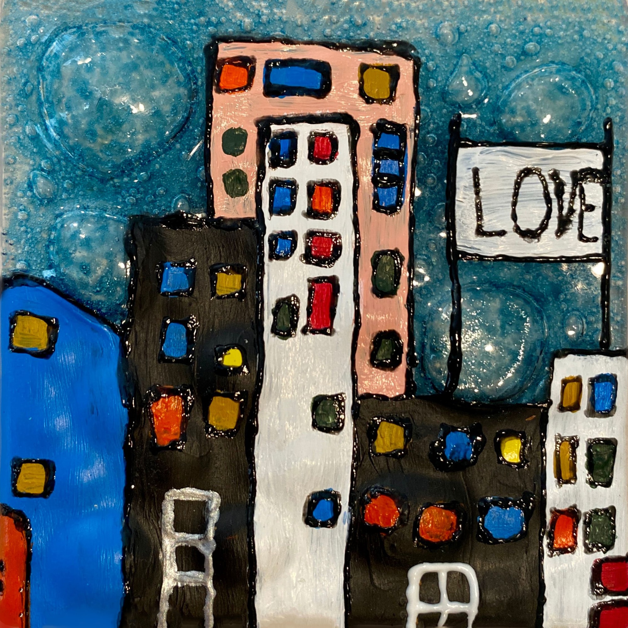Handmade glass tile painted in acrylic