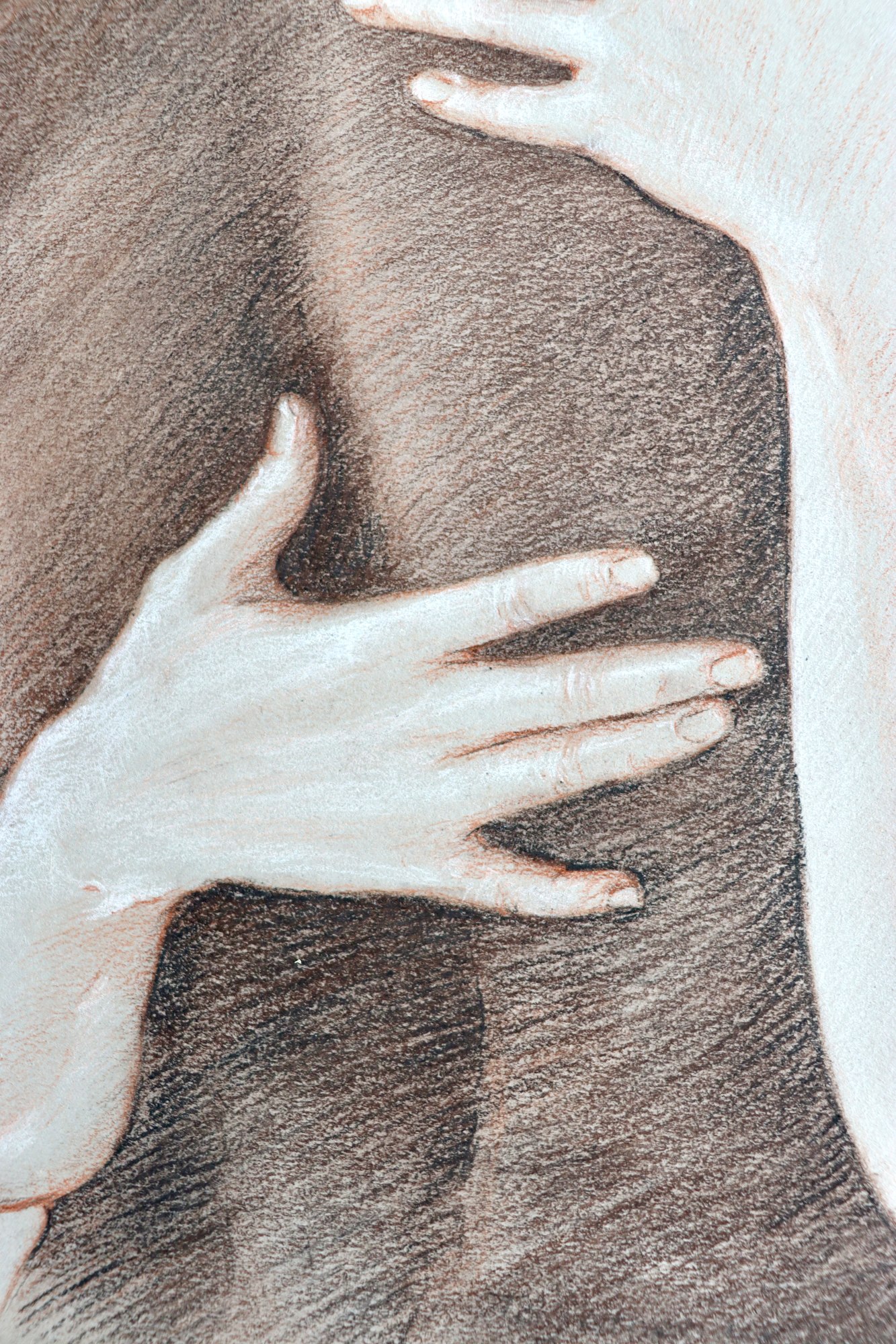 “Together we are better and stronger” portrays a darker figure and a paler figure embracing. Are they male, female, or of other genders - what does our stereotyping tell us?