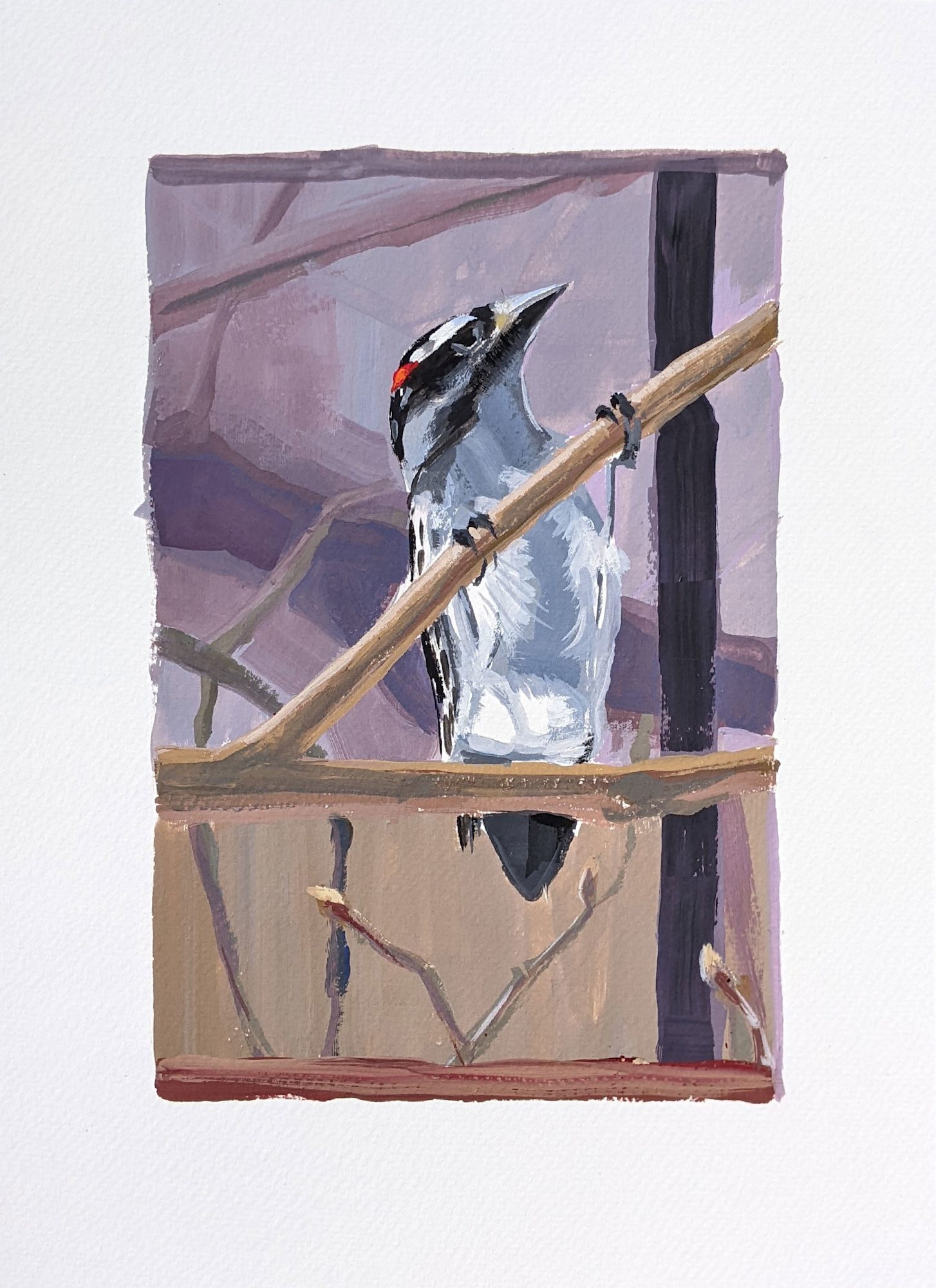 Downey Woodpecker Gouache