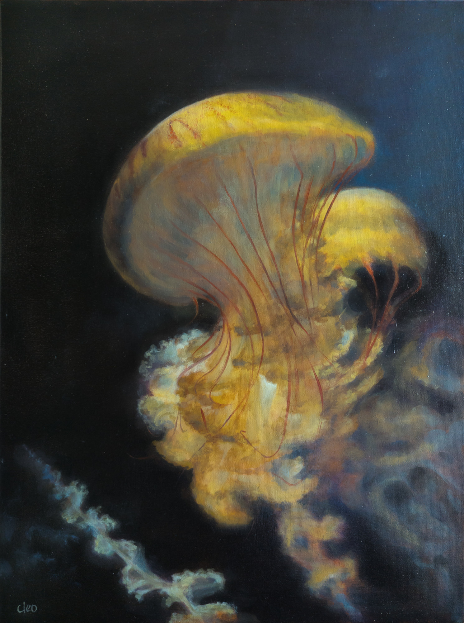 Cleo Huggins is an oil painter who merges classical forms with a deep-sea twist.