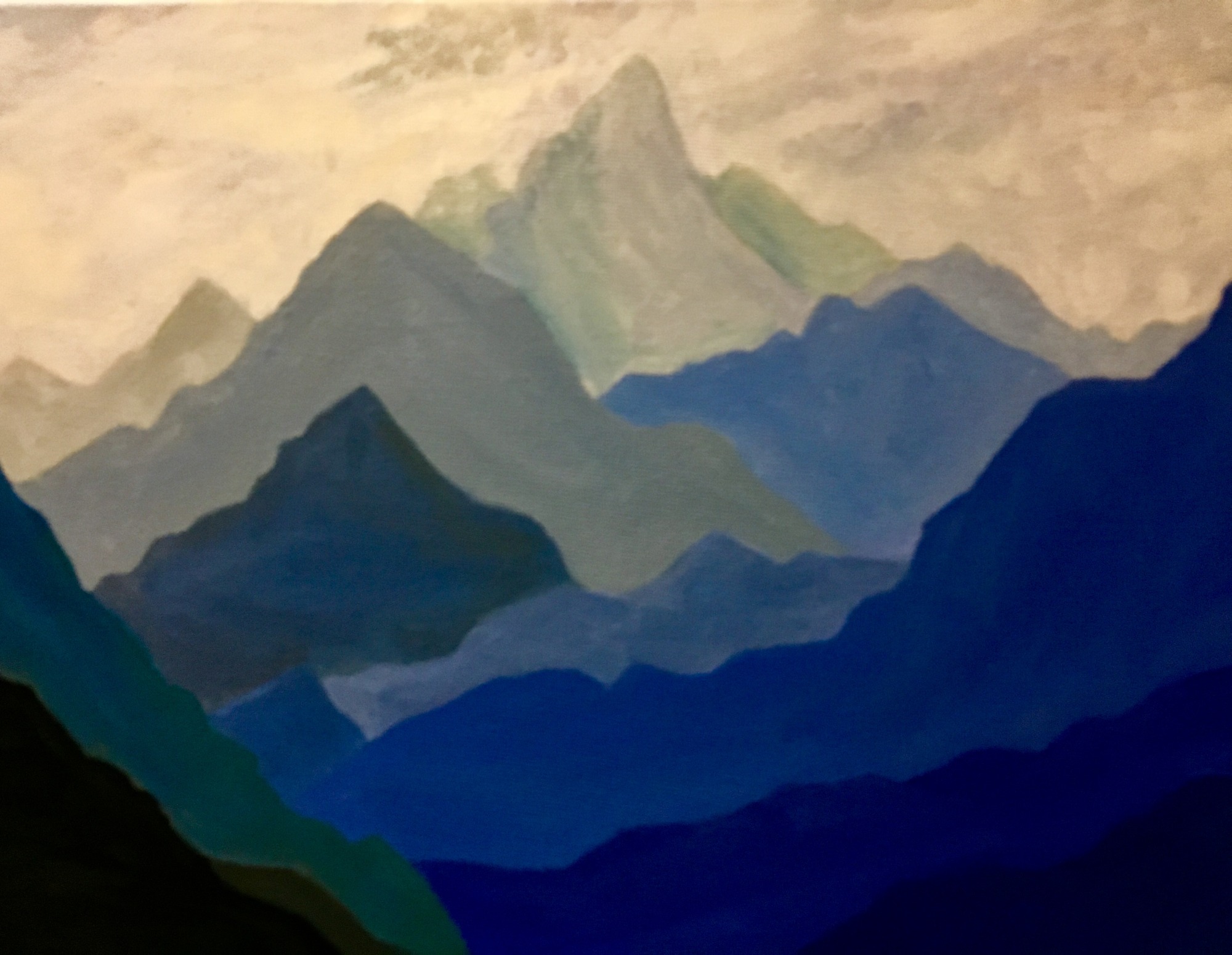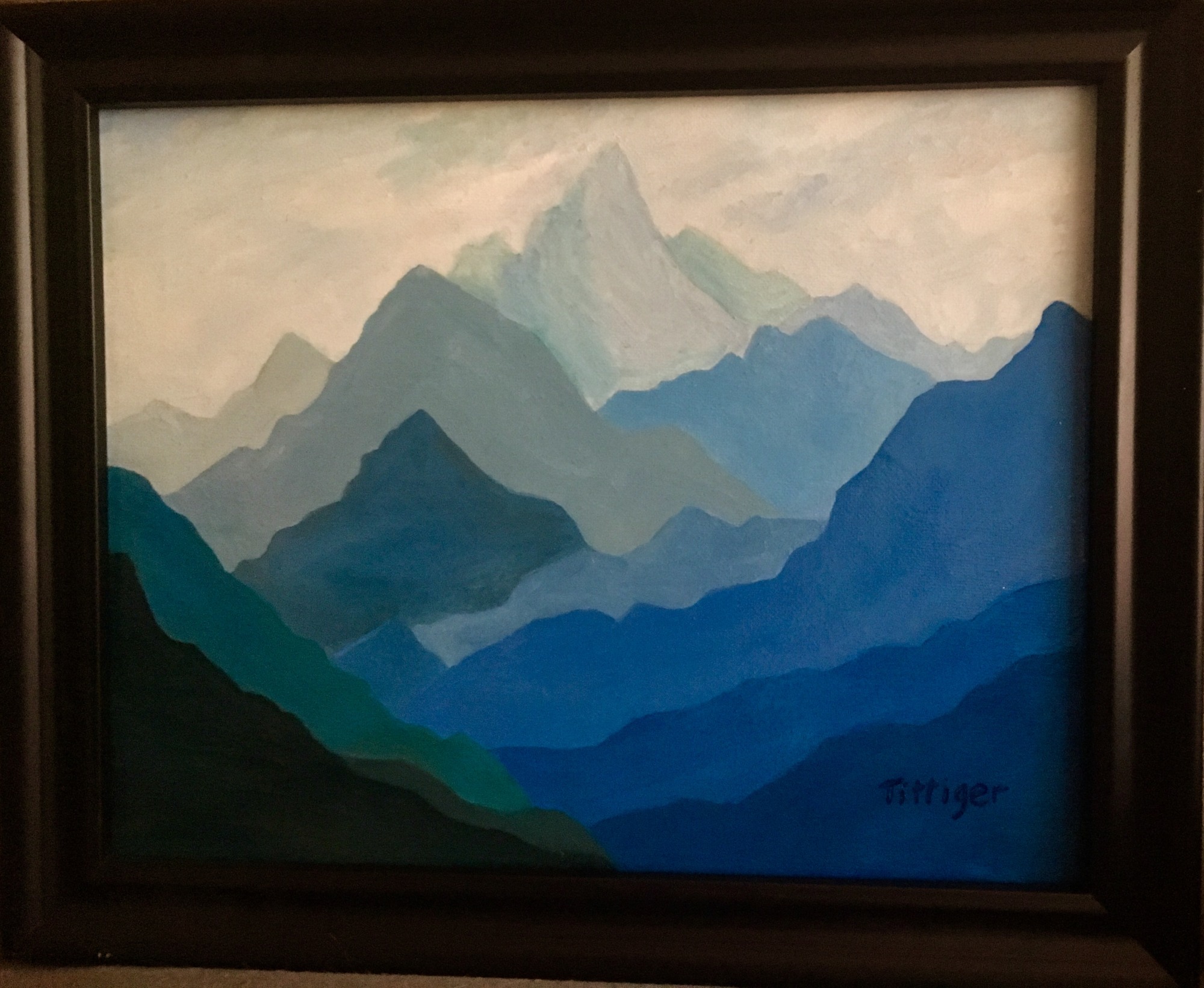 This is an oil painting of a mountain scene and part of my mountain series. The piece is framed.