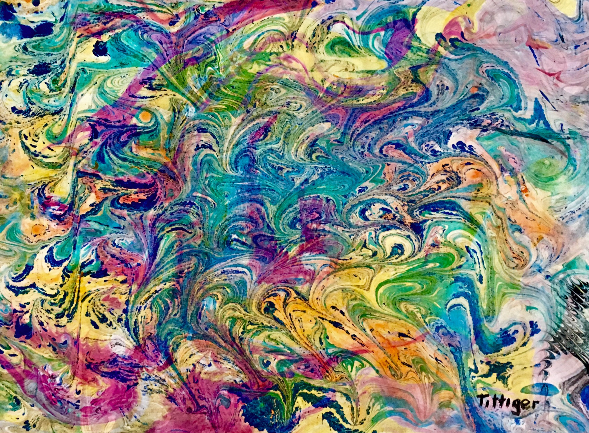 This is an acrylic marbling that has been marbled twice. It reminds of a Dreamsicle with all the flavors of Sherbet.