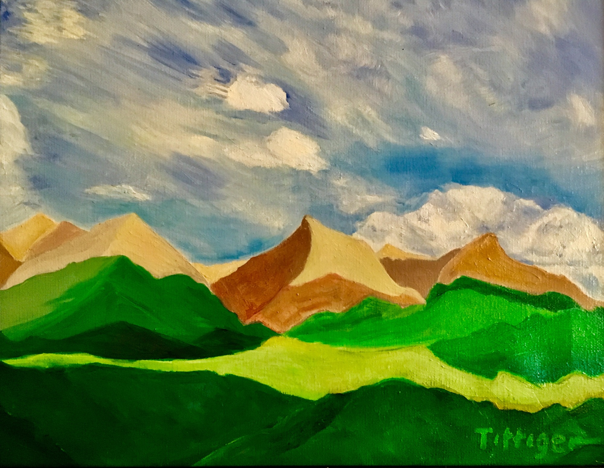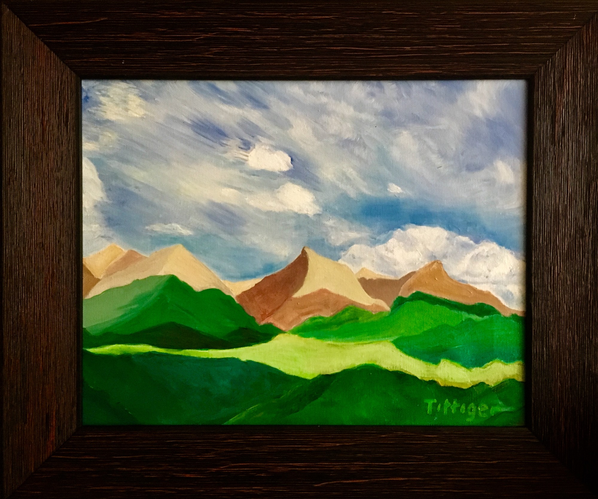 This is an Oil painting of a photo I found. It is part of my landscape series. I like using blocks of color. The piece is framed.