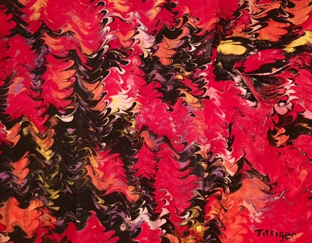 This is an acrylic marbling ready to be matted and framed. This design was created with a marbling comb.